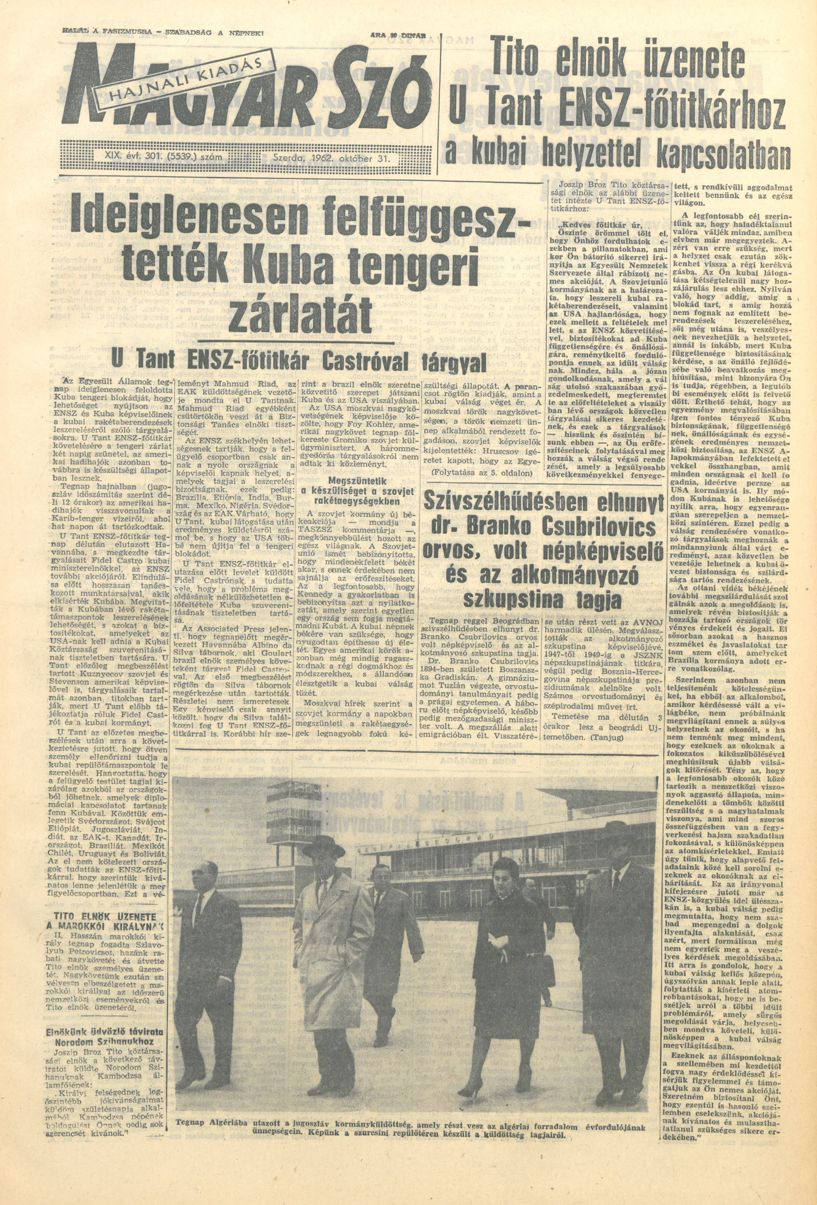 Magyar Szó, 19. évf. 1962. október 31. 301. sz. 1–14. oldal