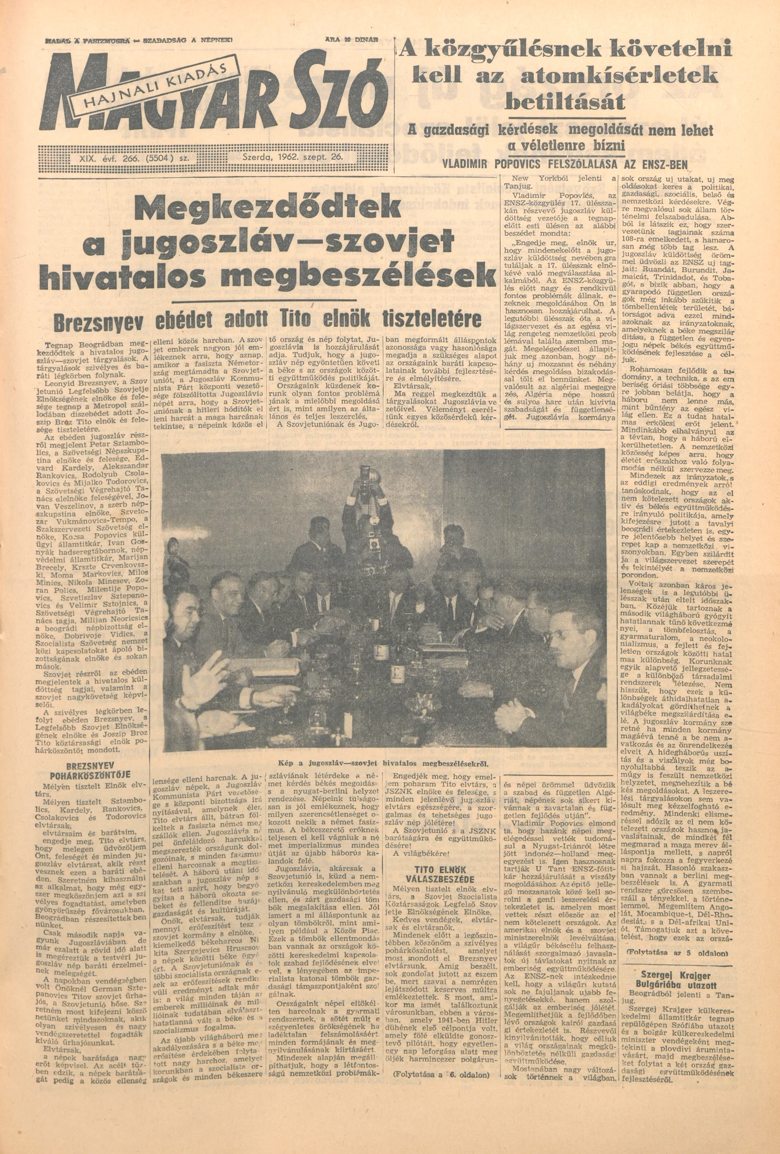Magyar Szó, 19. évf. 1962. szeptember 26. 266. sz. 1–12. oldal