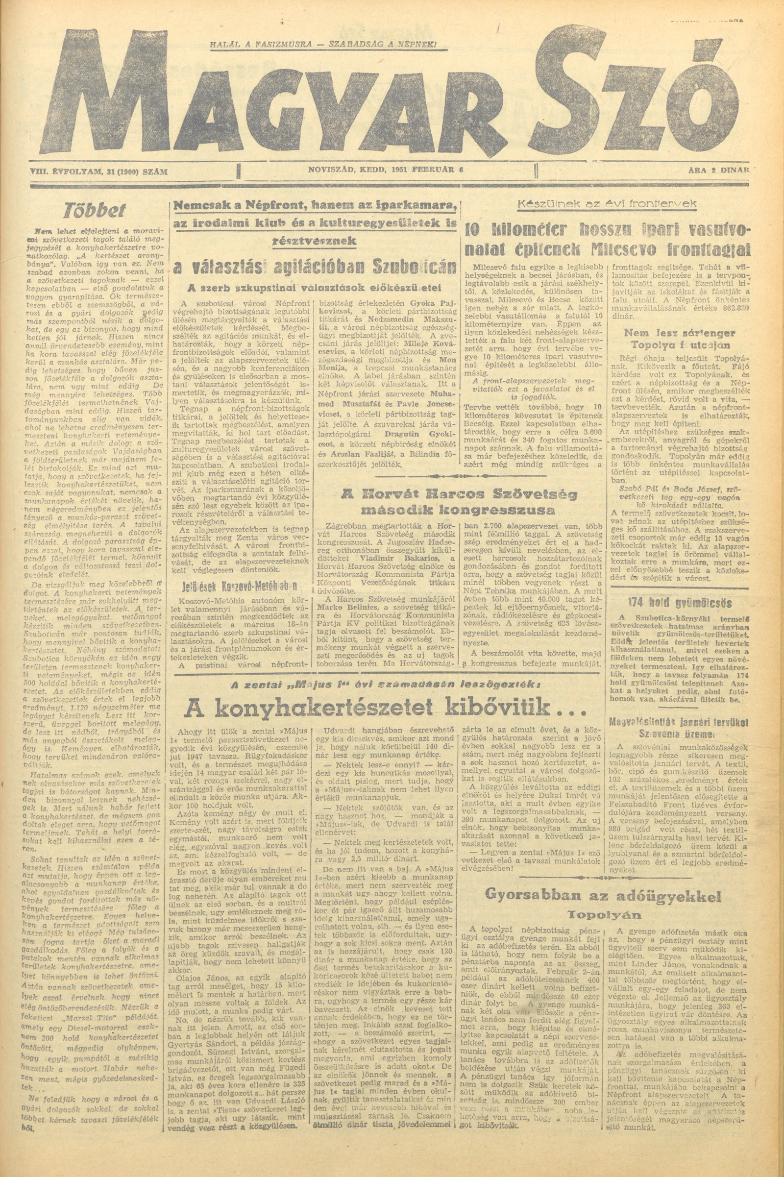 Magyar Szó 1951. február 6. 31. sz.
