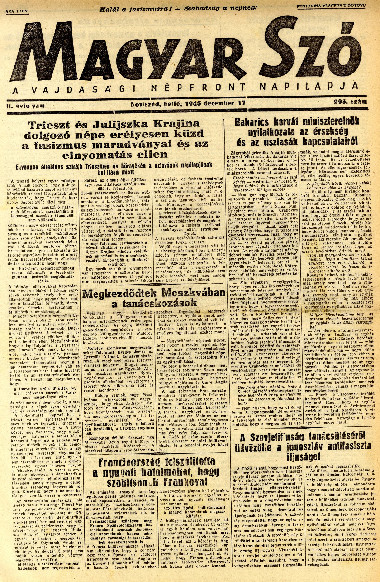 Magyar Szó, 2. évf. 1945. december 17. 293. sz. 1–4. oldal