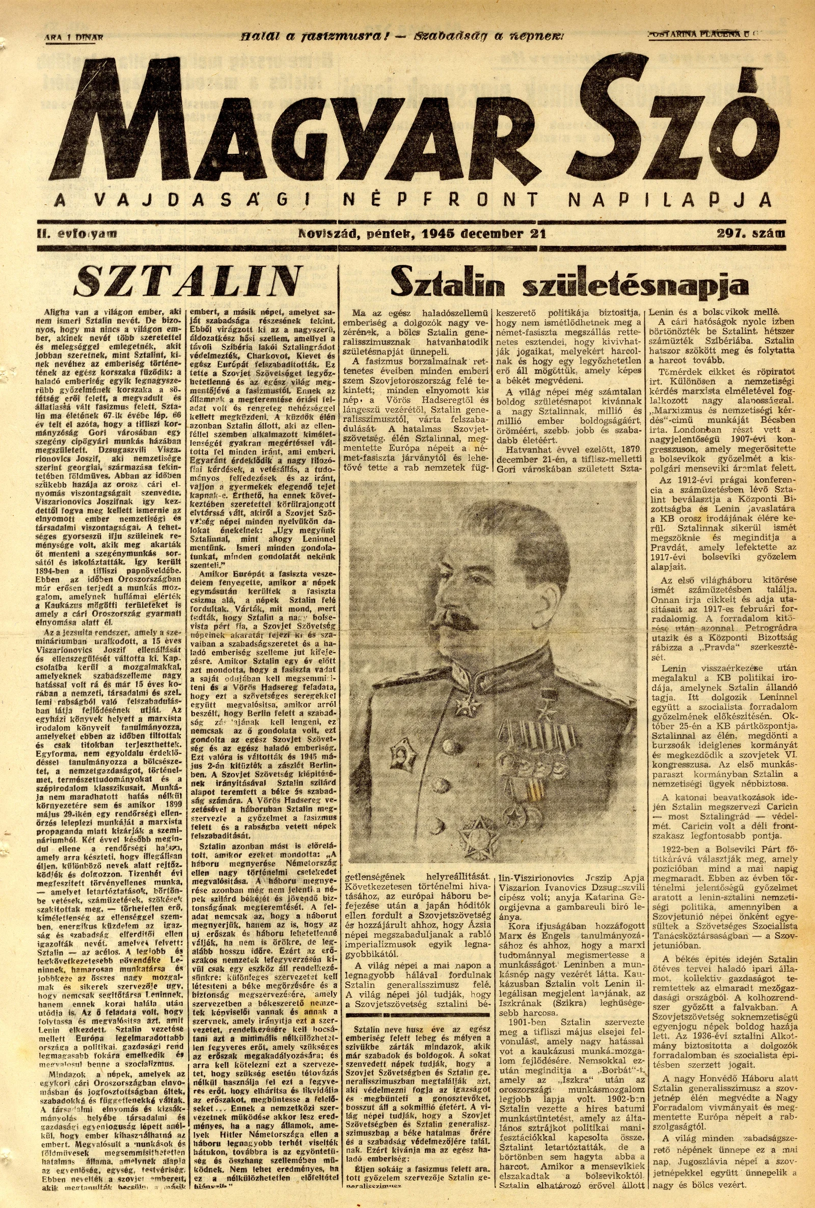 Magyar Szó, 2. évf. 1945. december 21. 297. sz. 1–4. oldal