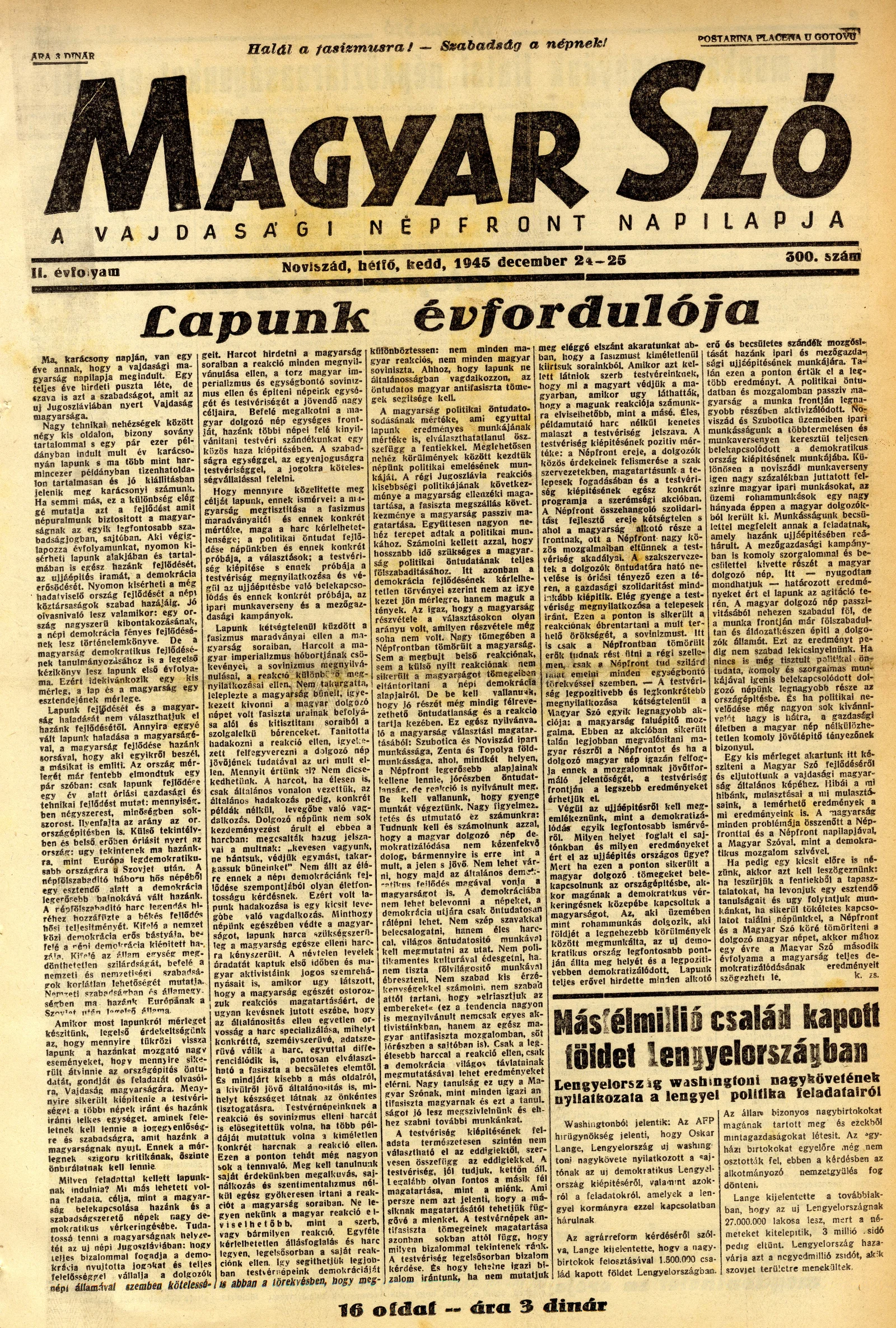 Magyar Szó, 2. évf. 1945. december 24. – 25. 300. sz. 1–16. oldal