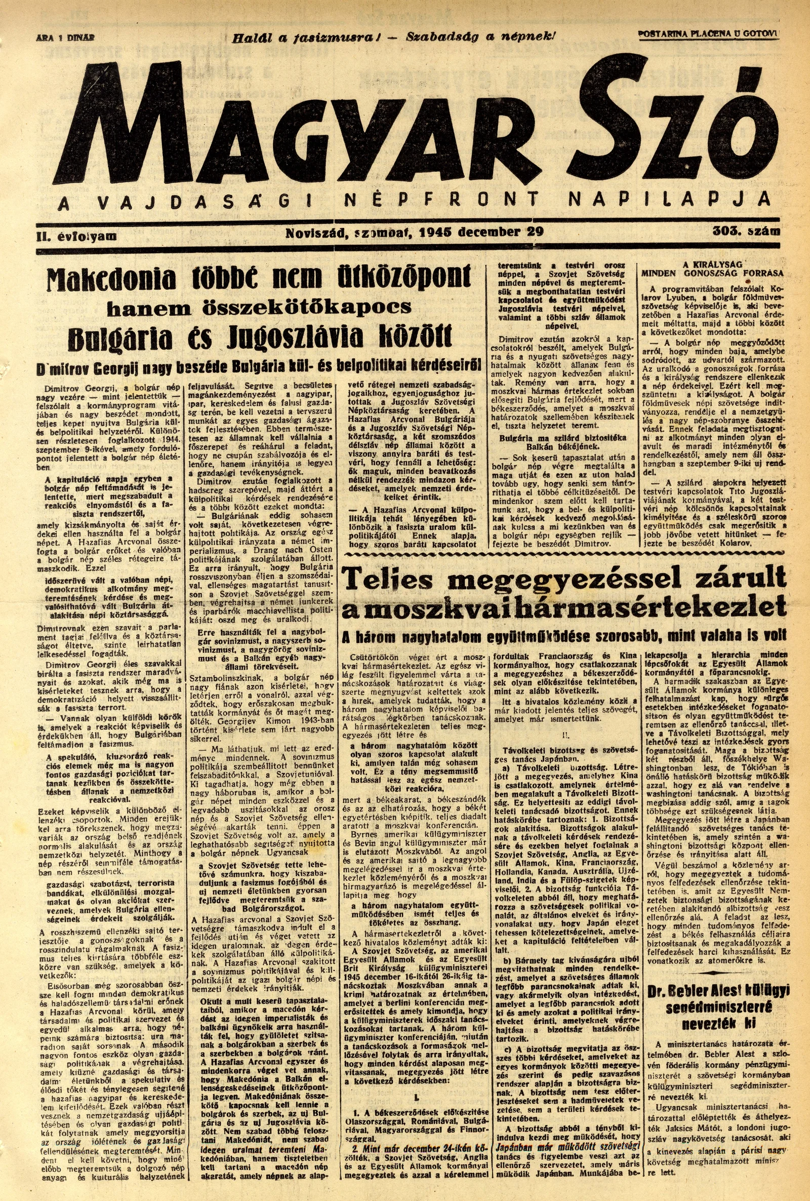 Magyar Szó, 2. évf. 1945. december 29. 303. sz. 1–4. oldal