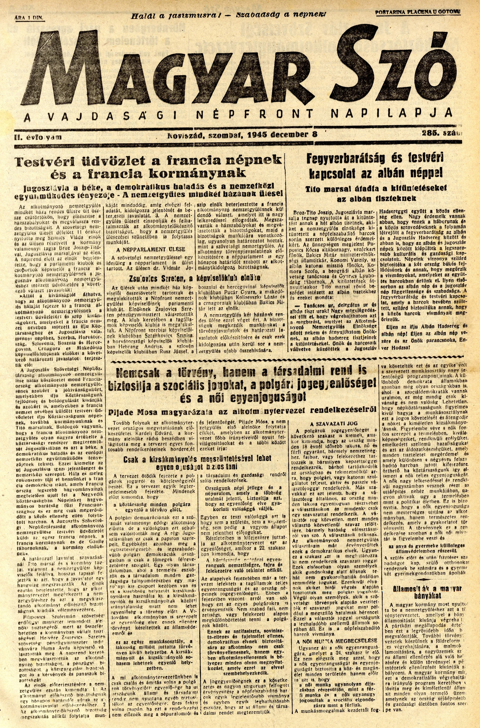 Magyar Szó, 2. évf. 1945. december 8. 285. sz. 1–4. oldal