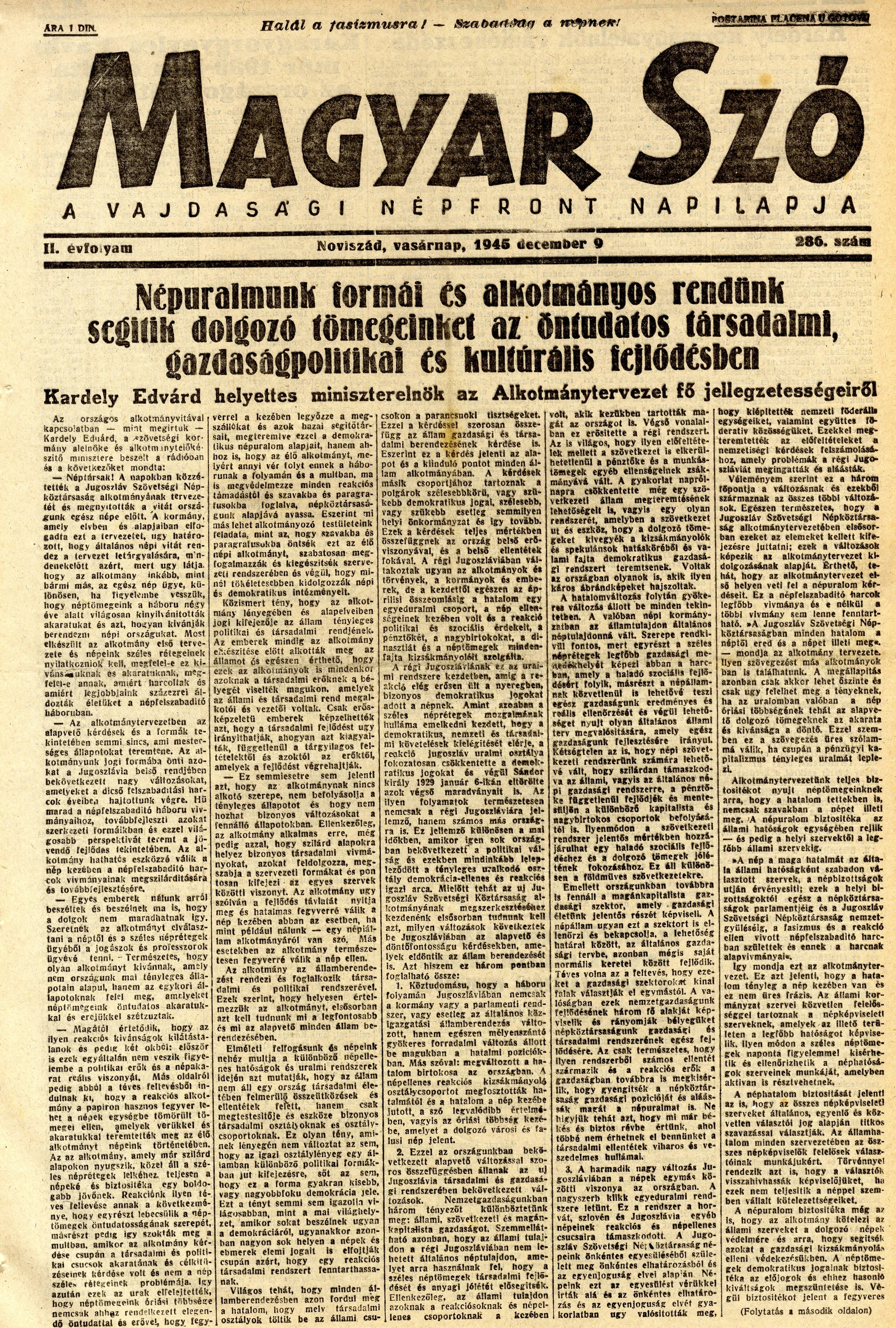 Magyar Szó, 2. évf. 1945. december 9. 286. sz. 1–8. oldal