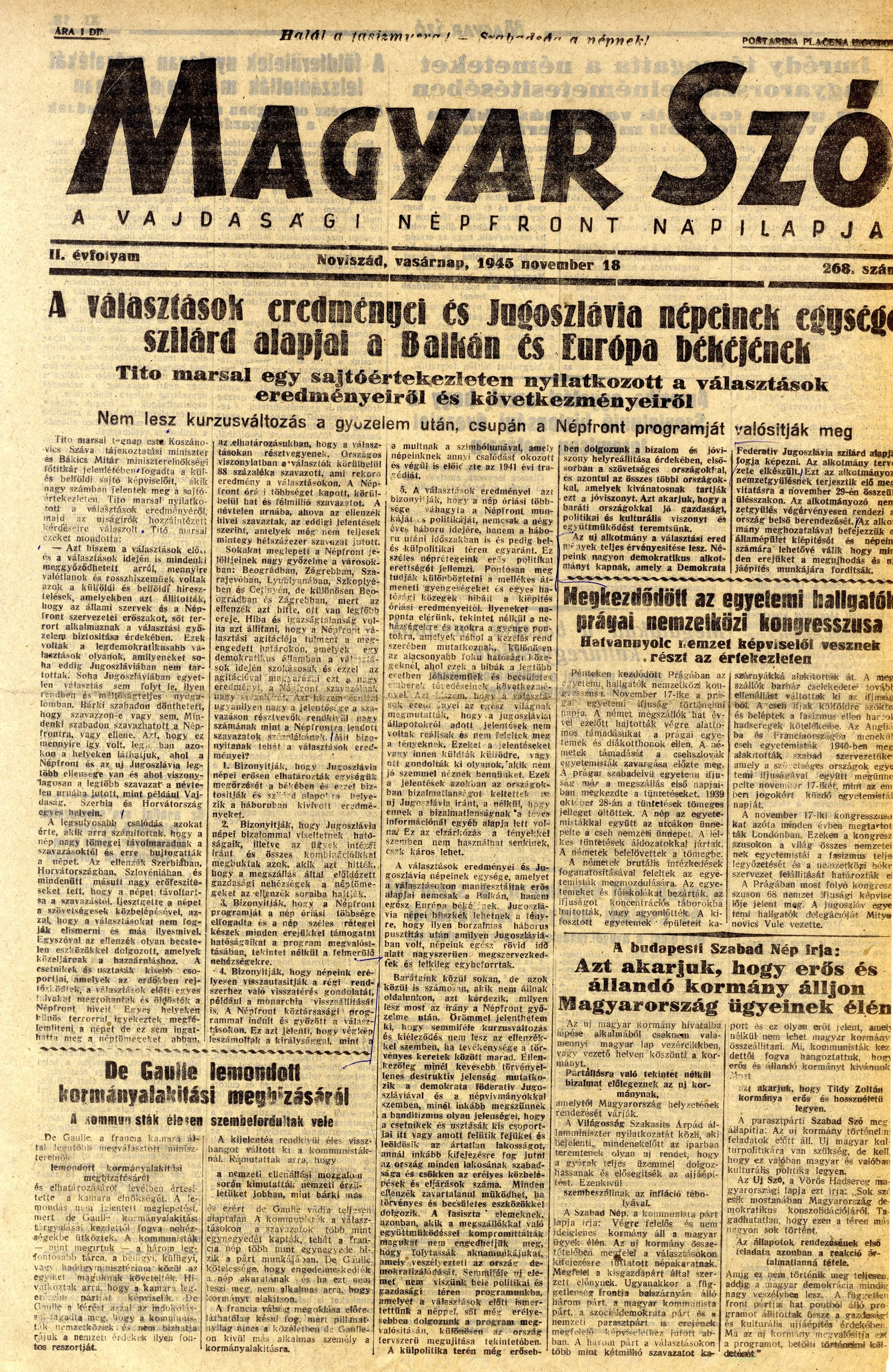 Magyar Szó, 2. évf. 1945. november 18. 268. sz. 1–4. oldal