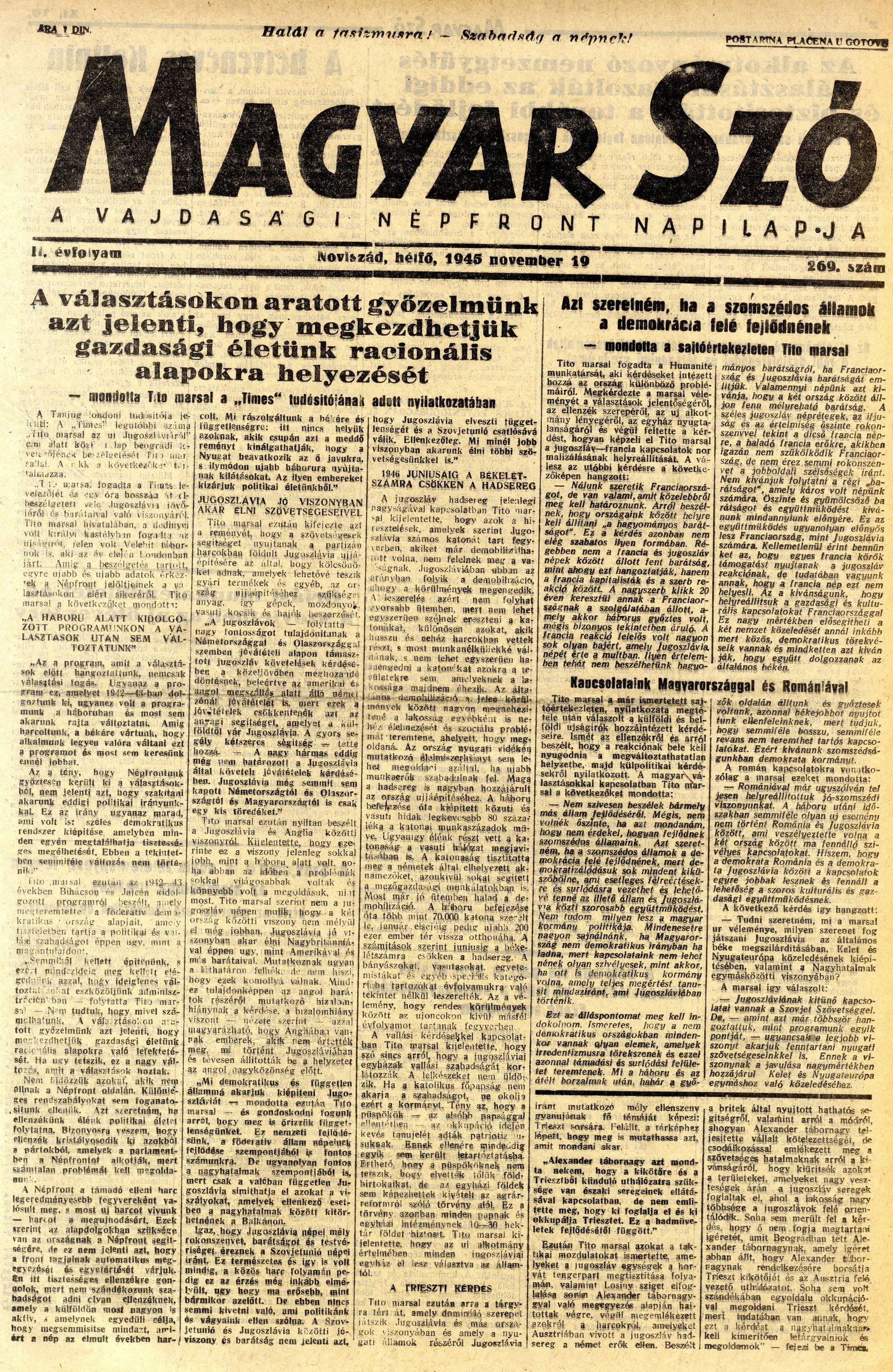 Magyar Szó, 2. évf. 1945. november 19. 269. sz. 1–4. oldal