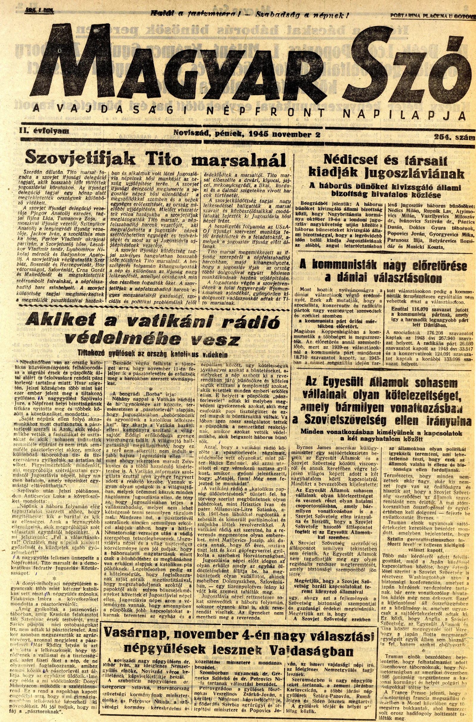 Magyar Szó, 2. évf. 1945. november 2. 254. sz. 1–4. oldal