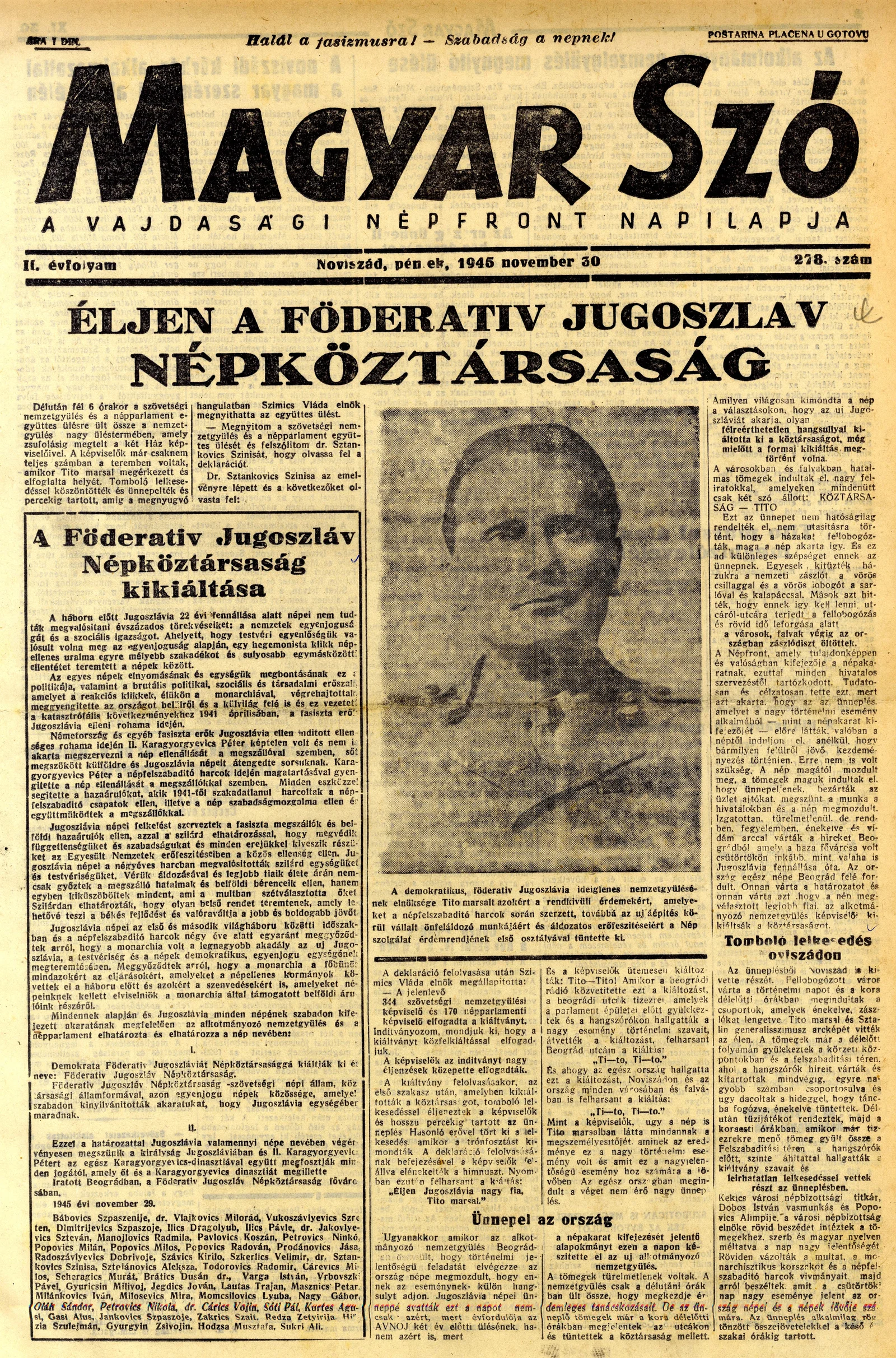 Magyar Szó, 2. évf. 1945. november 30. 278. sz. 1–4. oldal