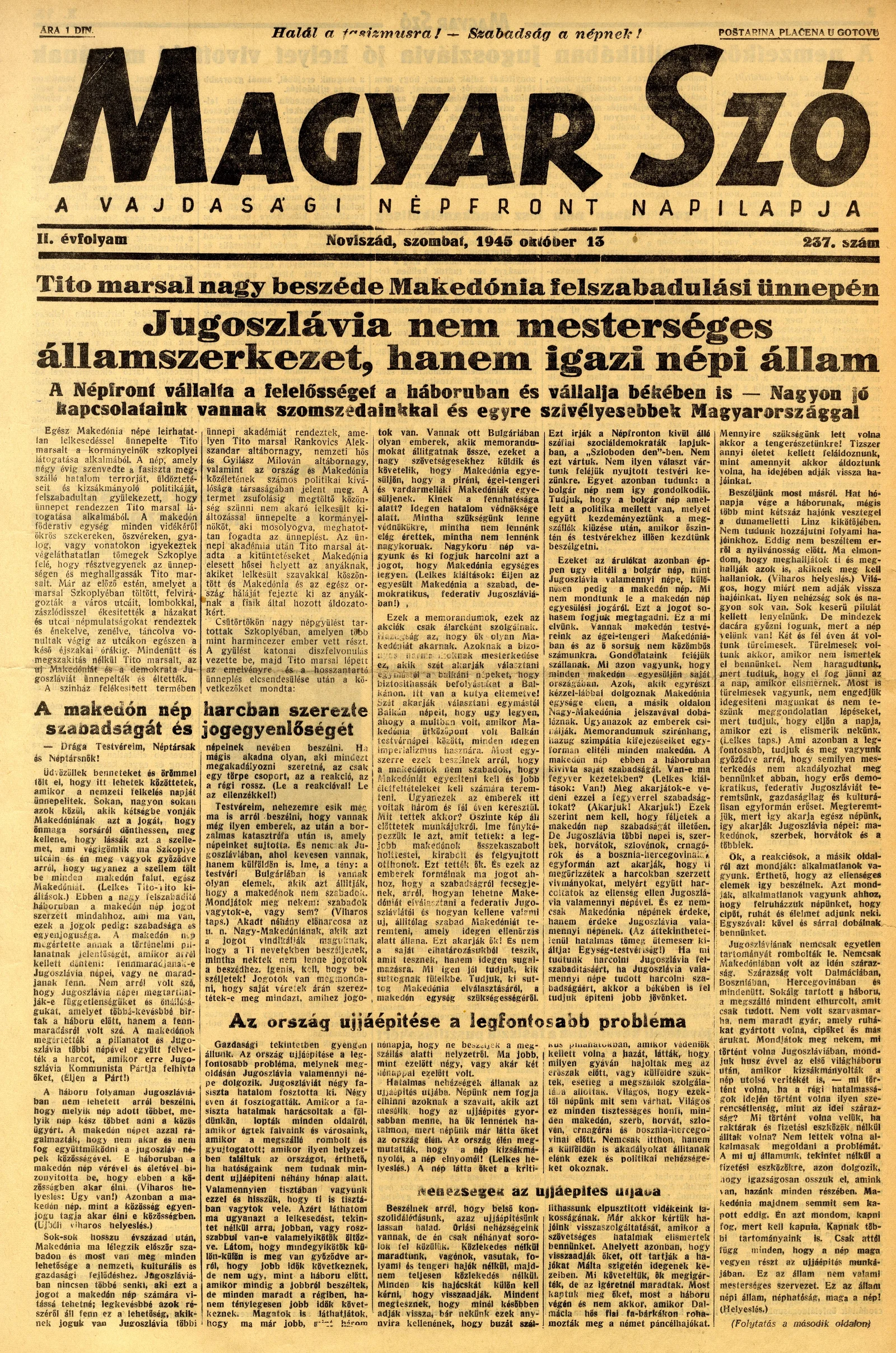 Magyar Szó, 2. évf. 1945. október 13. 237. sz. 1–4. oldal