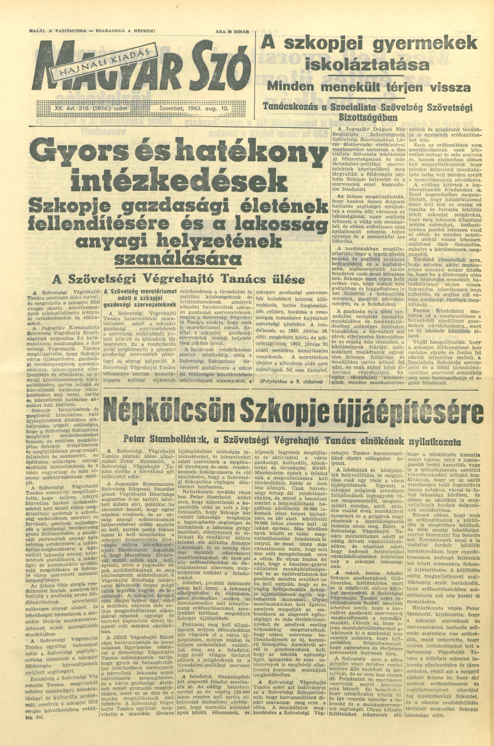 Magyar Szó, 20. évf. 1963. augusztus 10. 218. sz. 1–12. oldal
