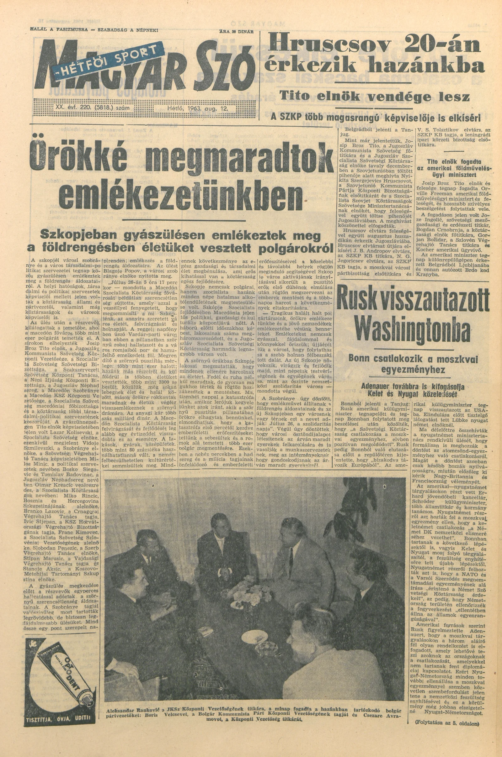 Magyar Szó, 20. évf. 1963. augusztus 12. 220. sz. 1–14. oldal