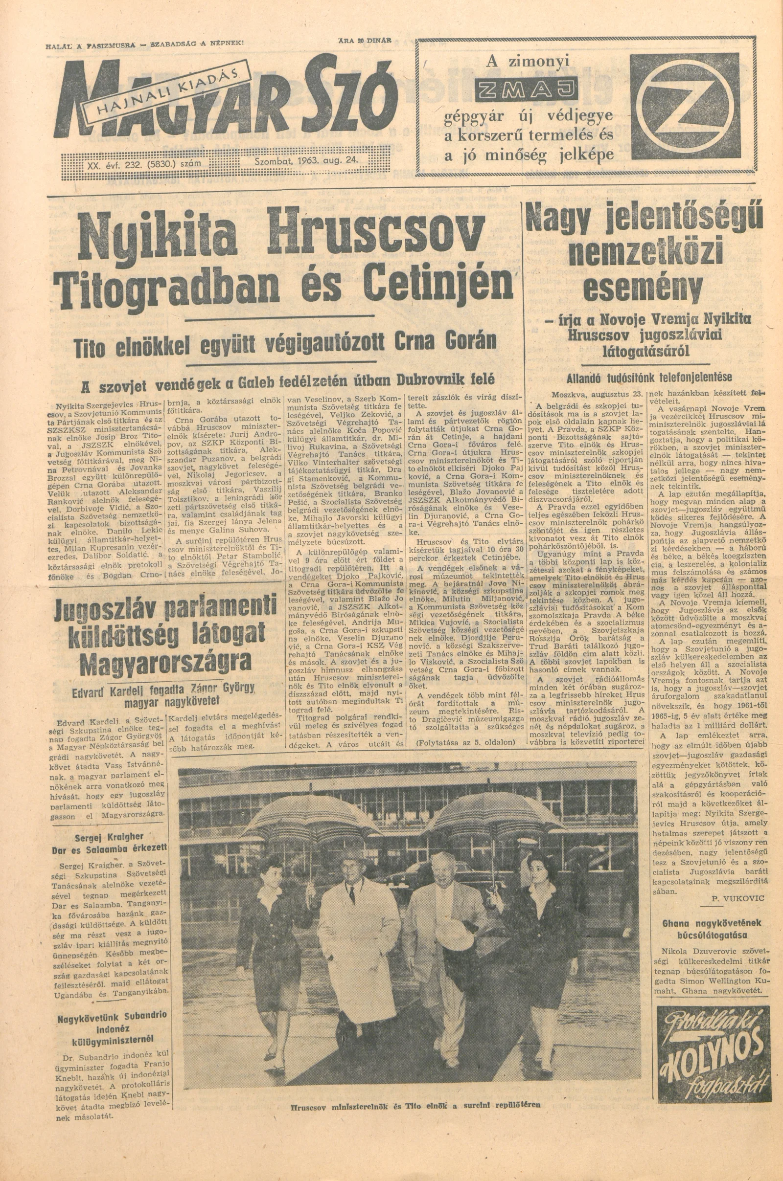 Magyar Szó, 20. évf. 1963. augusztus 24. 232. sz. 1–12. oldal