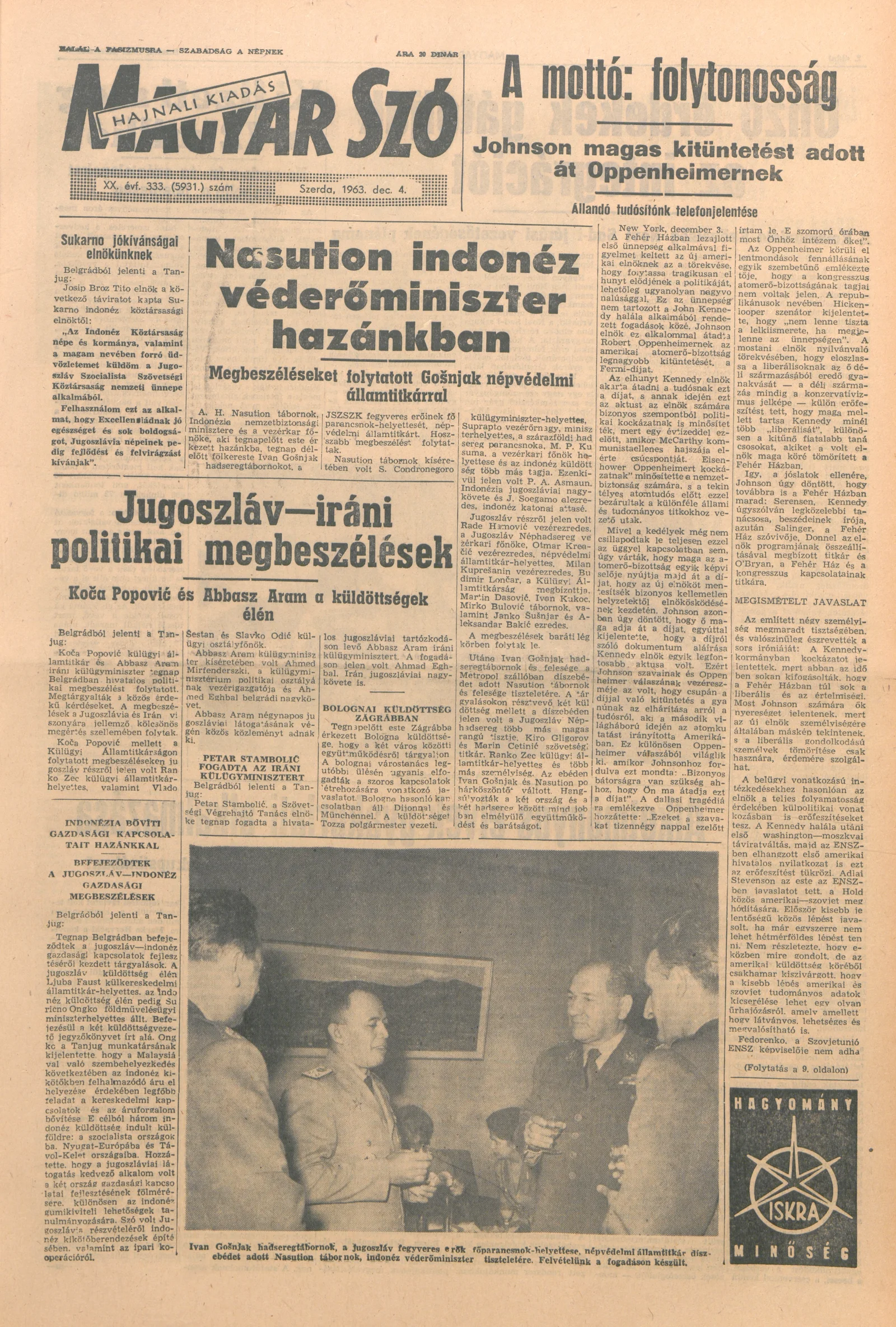 Magyar Szó, 20. évf. 1963. december 4. 333. sz. 1–16. oldal