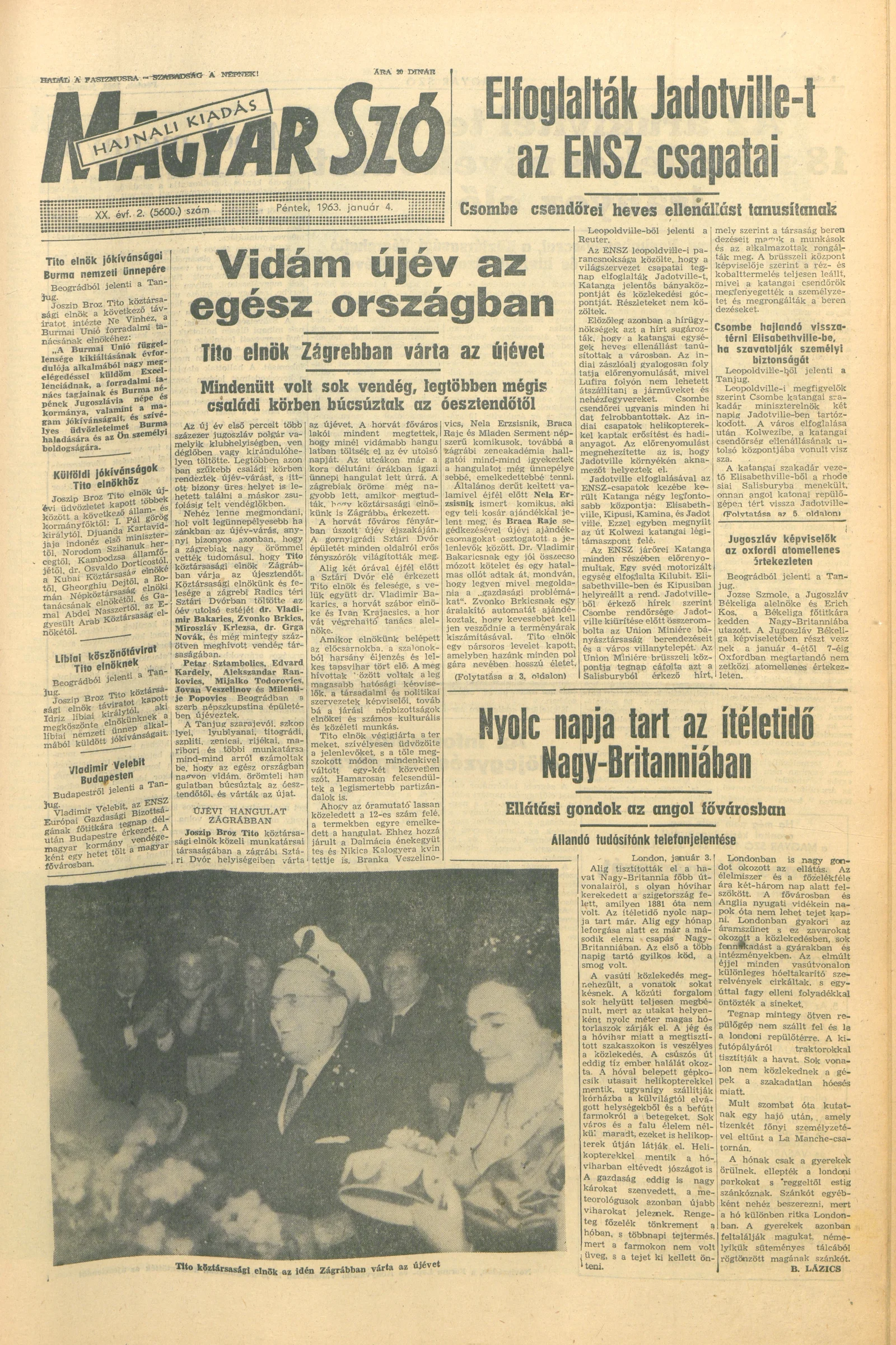 Magyar Szó, 20. évf. 1963. január 4. 2. sz. 1–14. oldal