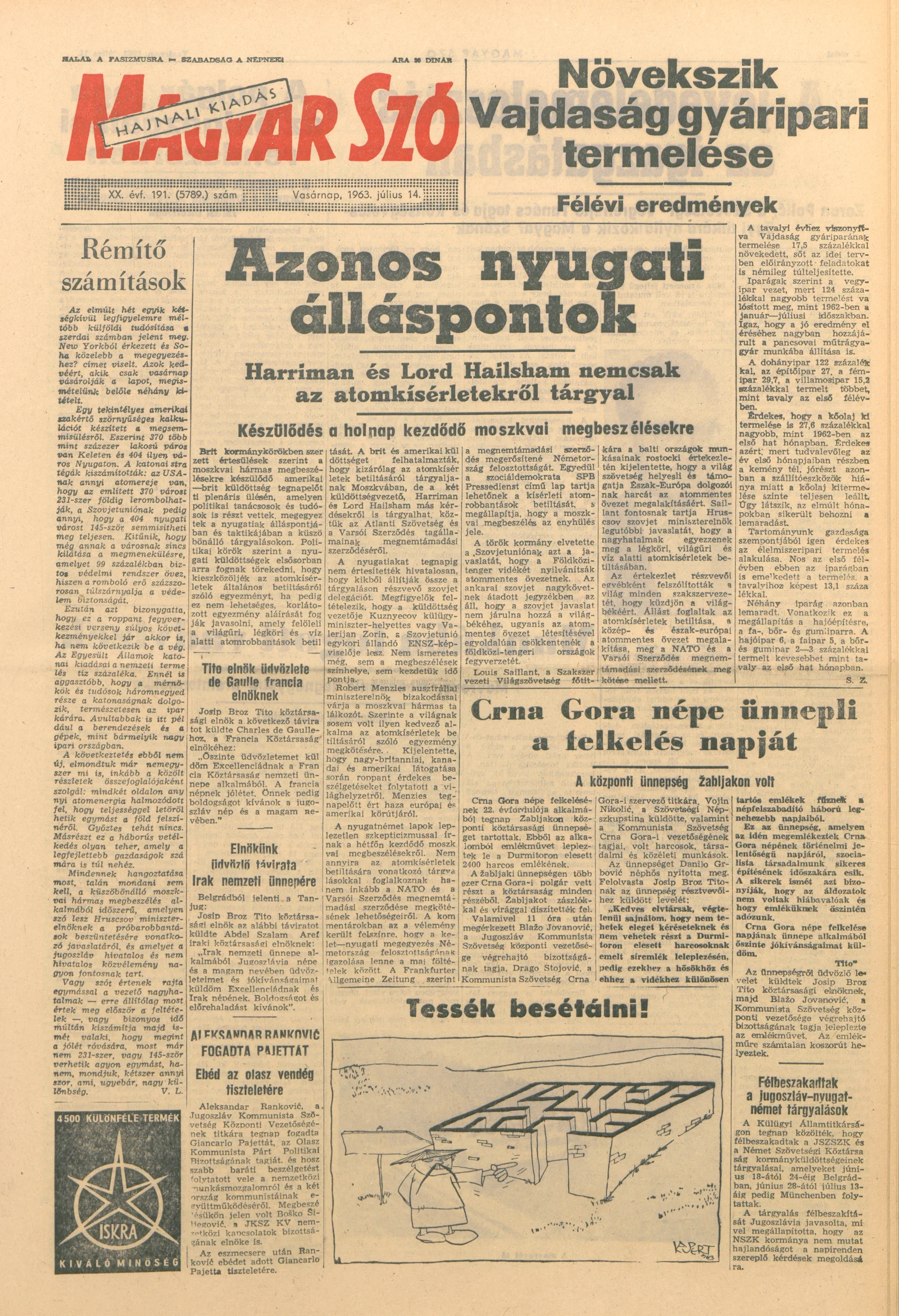 Magyar Szó, 20. évf. 1963. július 14. 191. sz. 1–24. oldal