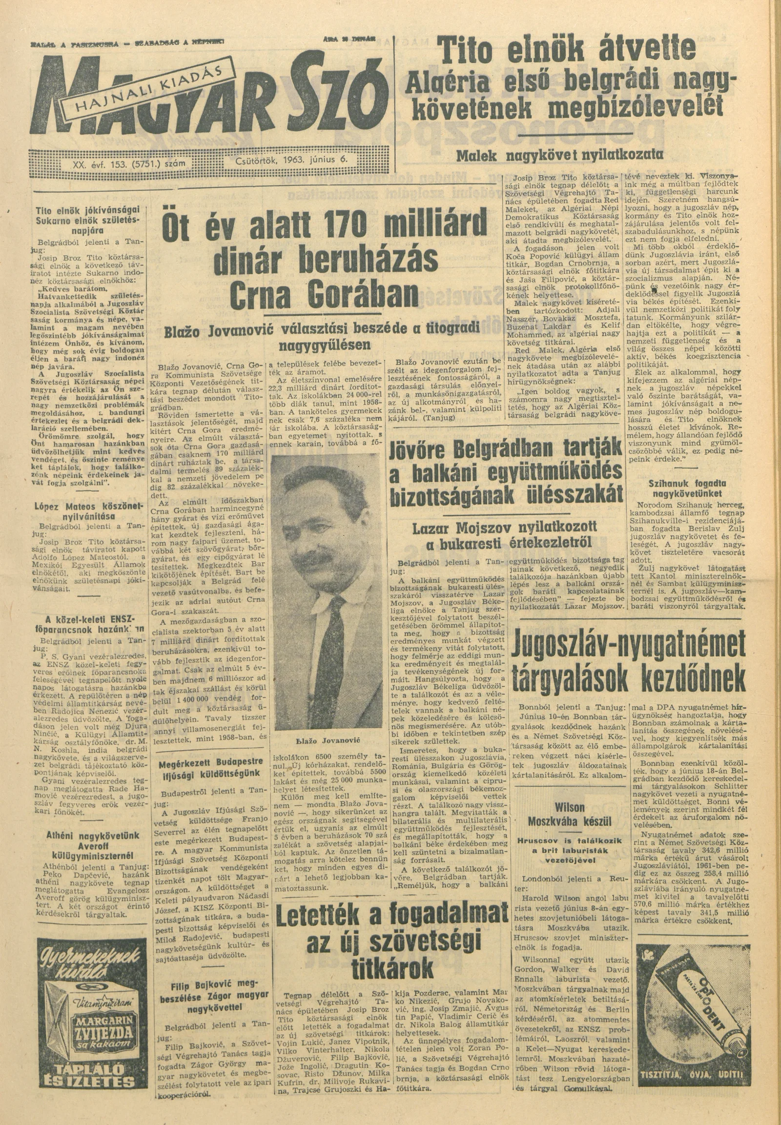 Magyar Szó, 20. évf. 1963. június 6. 153. sz. 1–16. oldal