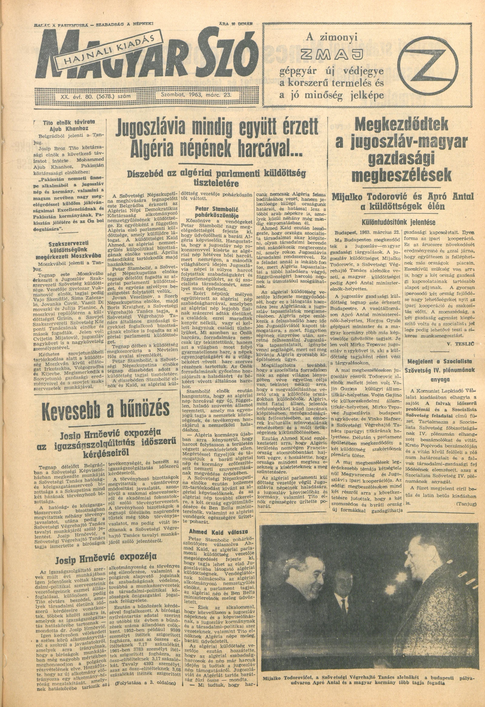 Magyar Szó, 20. évf. 1963. március 23. 80. sz. 1–12. oldal