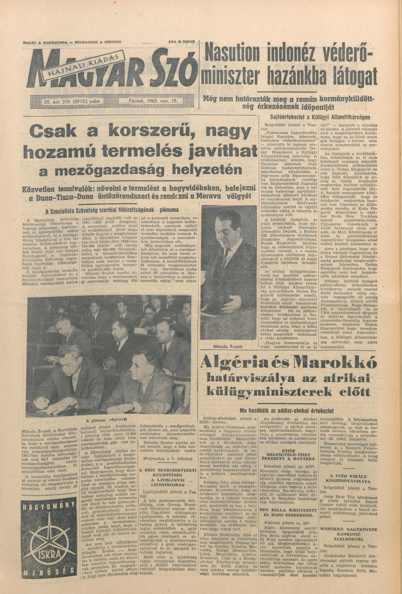 Magyar Szó, 20. évf. 1963. november 15. 315. sz. 1–16. oldal