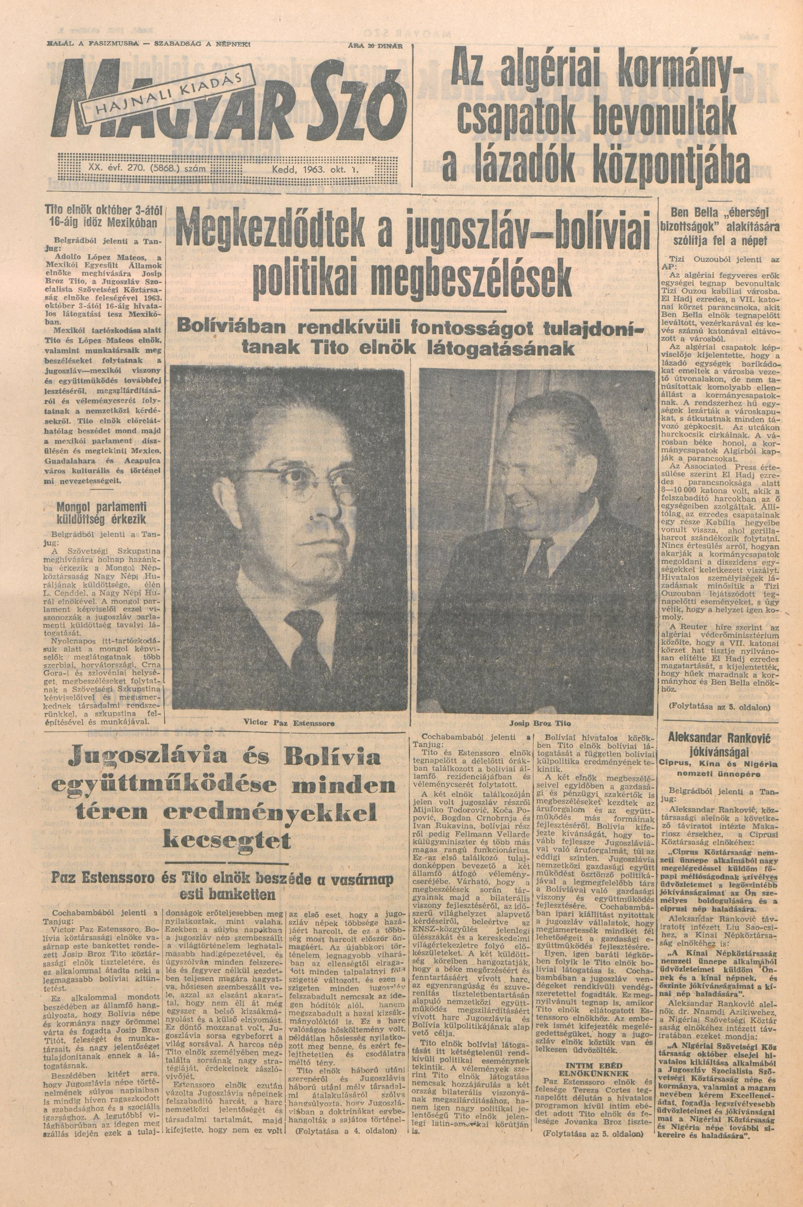 Magyar Szó, 20. évf. 1963. október 1. 270. sz. 1–14. oldal