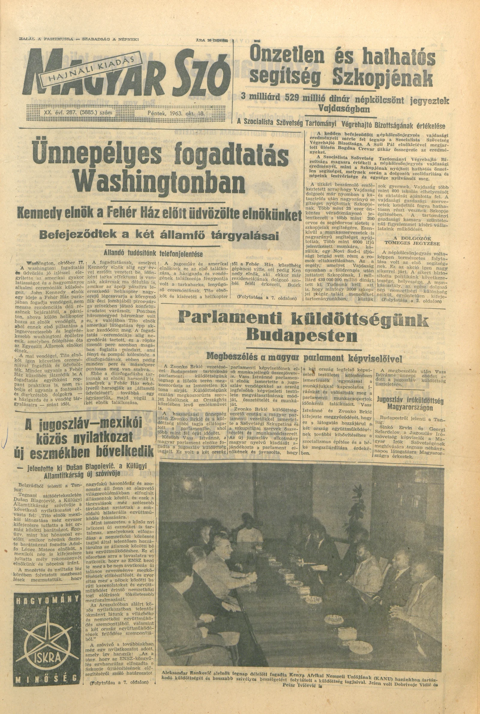 Magyar Szó, 20. évf. 1963. október 18. 287. sz. 1–16. oldal
