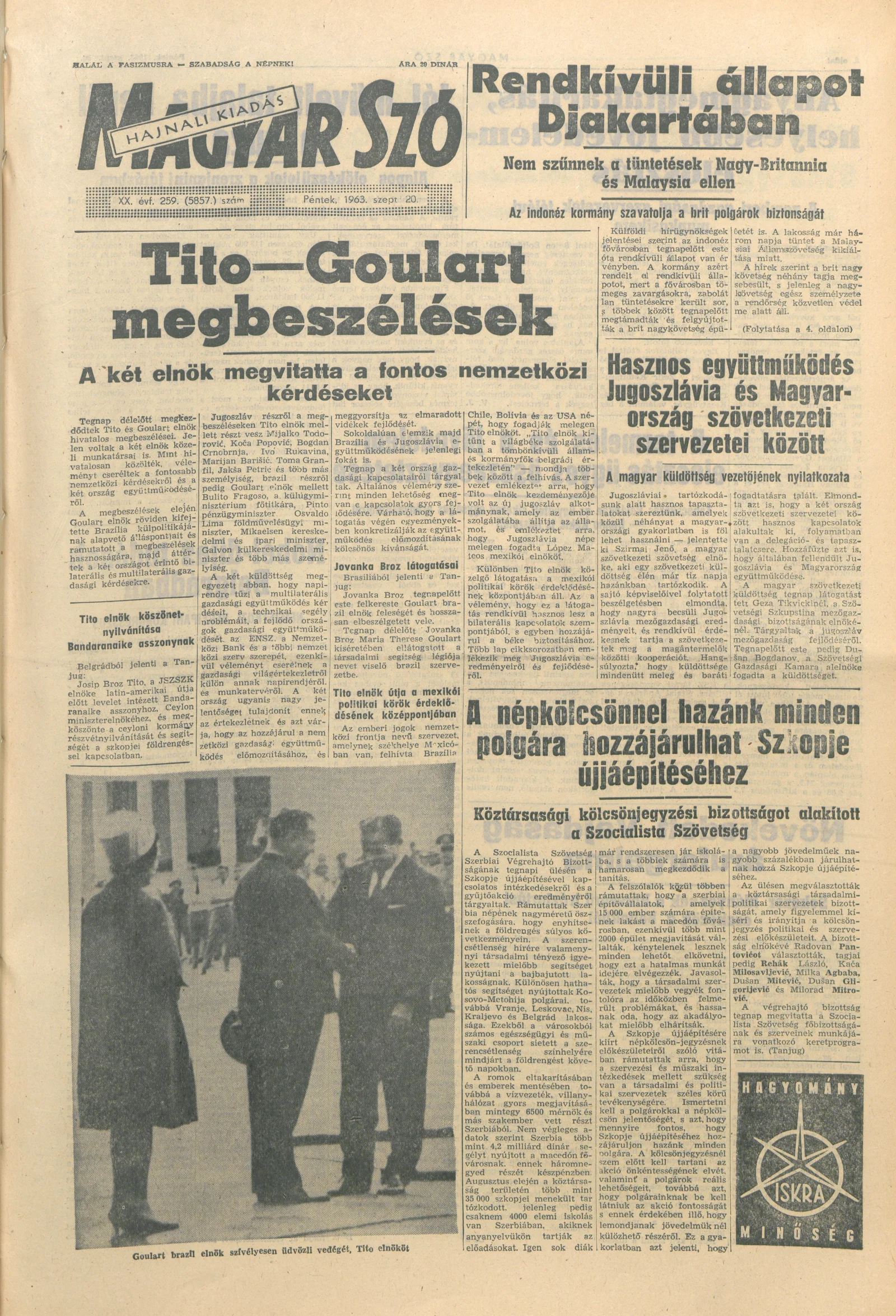 Magyar Szó, 20. évf. 1963. szeptember 20. 259. sz. 1–14. oldal