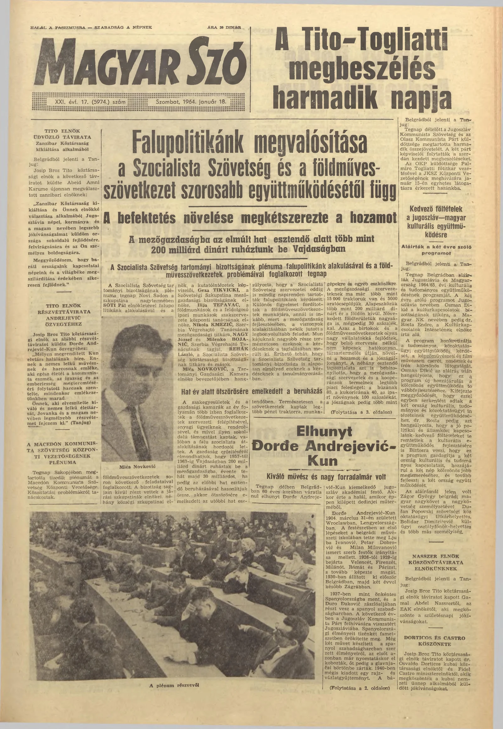 Magyar Szó, 21. évf. 1964. január 18. 17. sz. 1–12. oldal