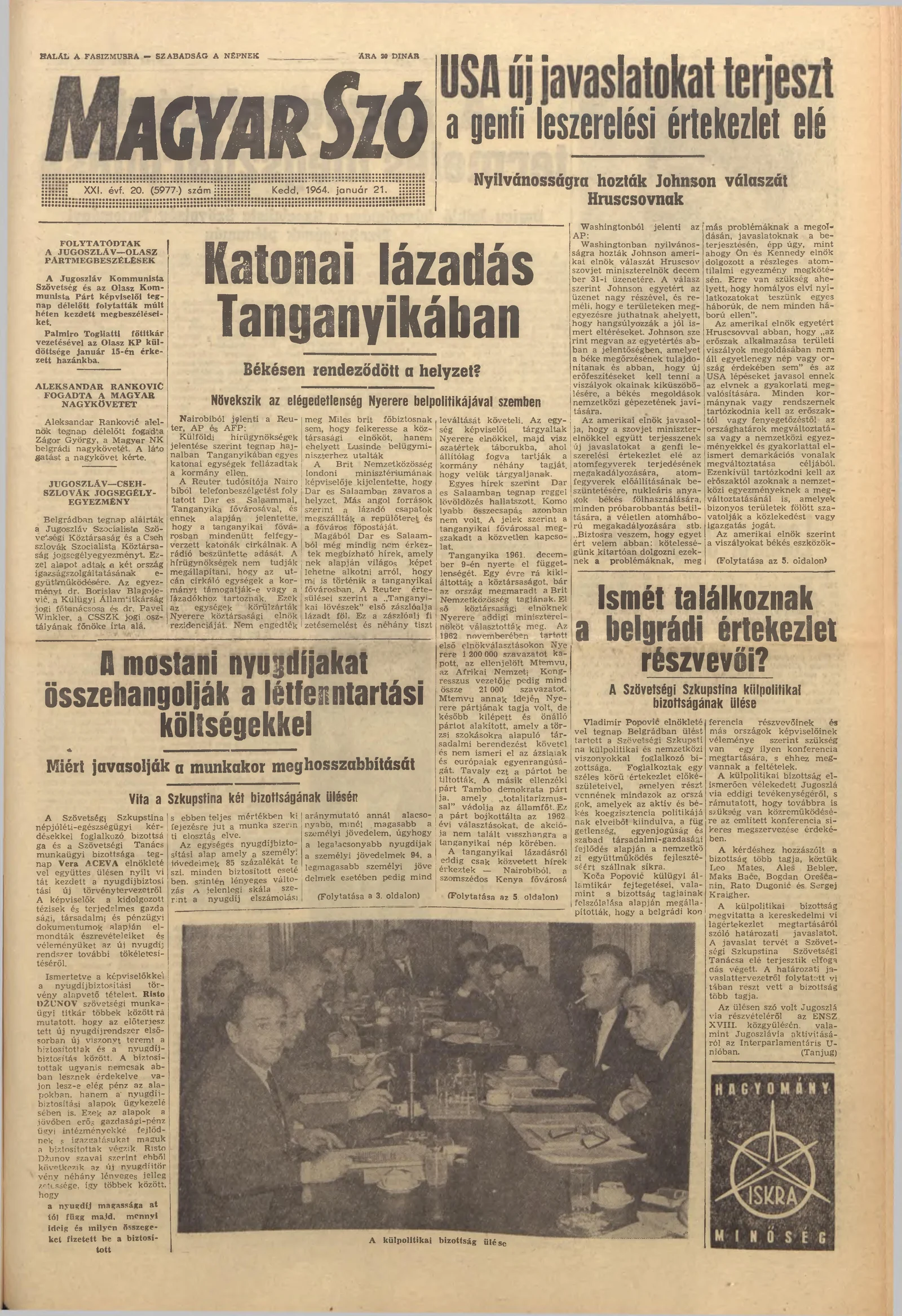 Magyar Szó, 21. évf. 1964. január 21. 20. sz. 1–16. oldal
