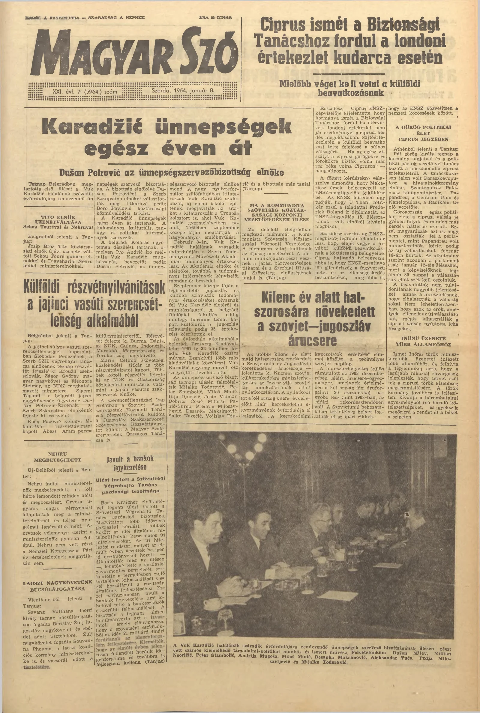 Magyar Szó, 21. évf. 1964. január 8. 7. sz. 1–16. oldal