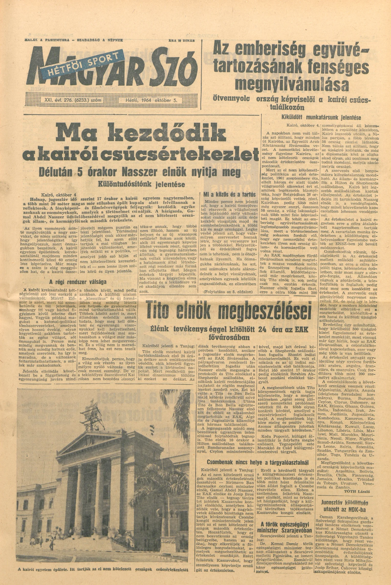 Magyar Szó, 21. évf. 1964. október 5. 276. sz. 1–16. oldal