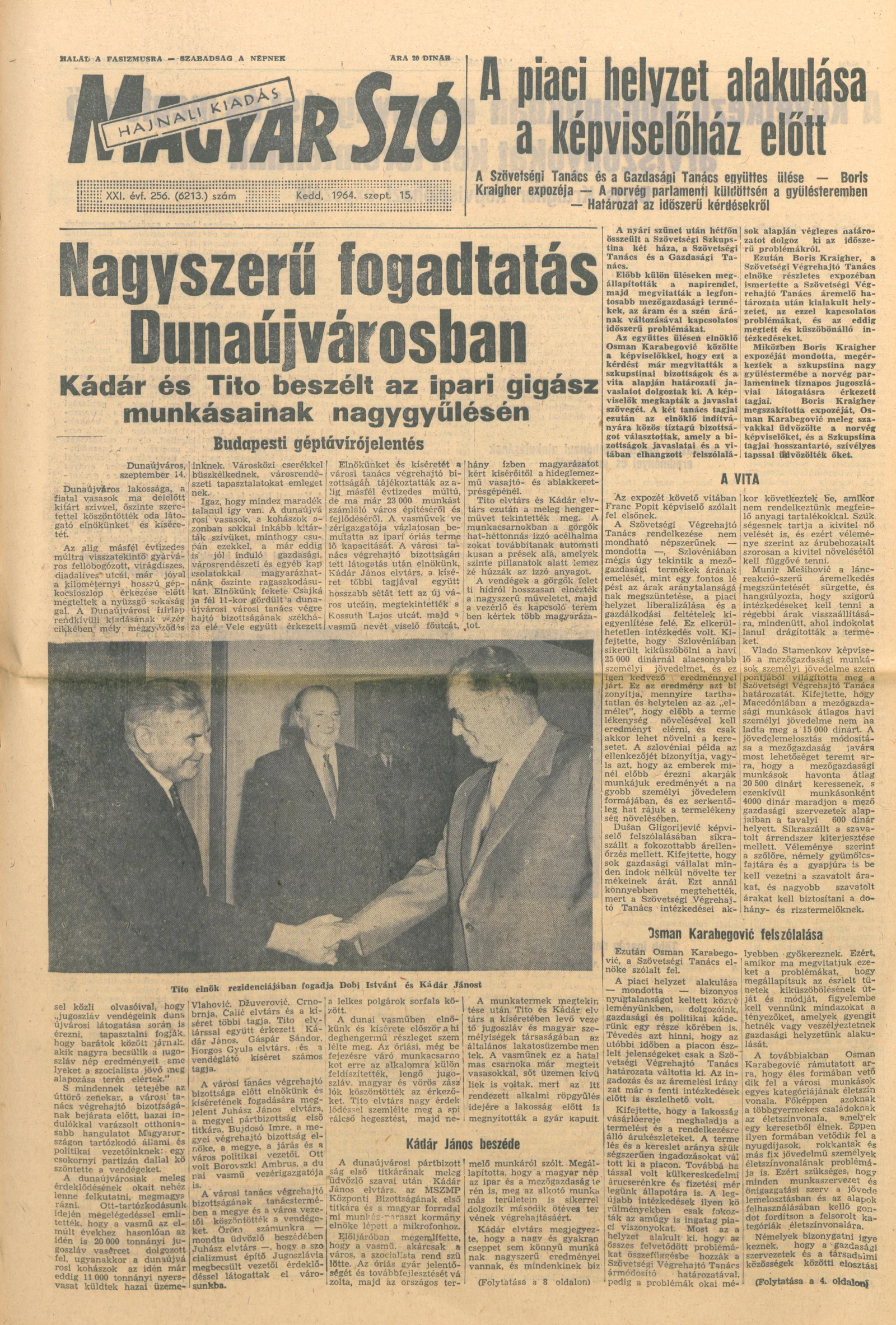 Magyar Szó, 21. évf. 1964. szeptember 15. 256. sz.