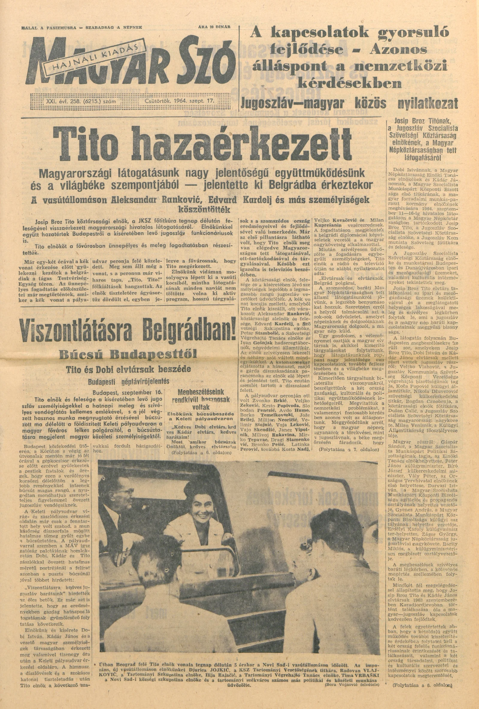 Magyar Szó, 21. évf. 1964. szeptember 17. 258. sz.