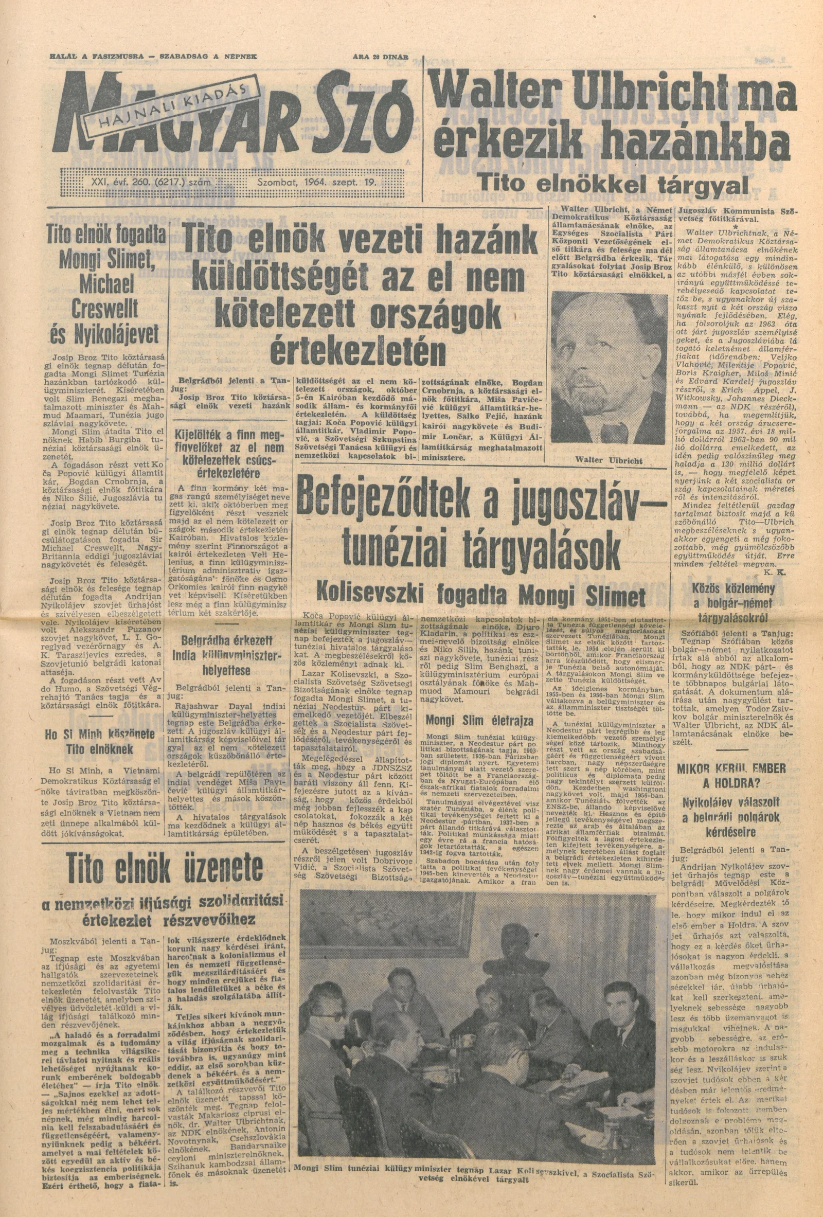 Magyar Szó, 21. évf. 1964. szeptember 19. 260. sz.