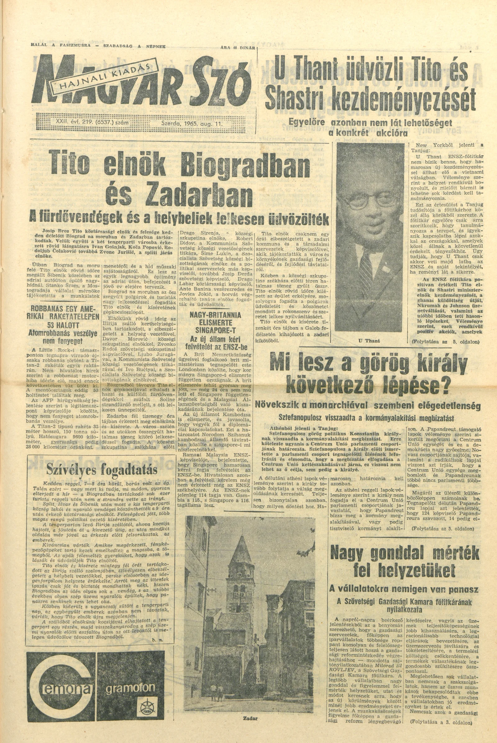 Magyar Szó, 22. évf. 1965. augusztus 11. 219. sz. 1–14. oldal