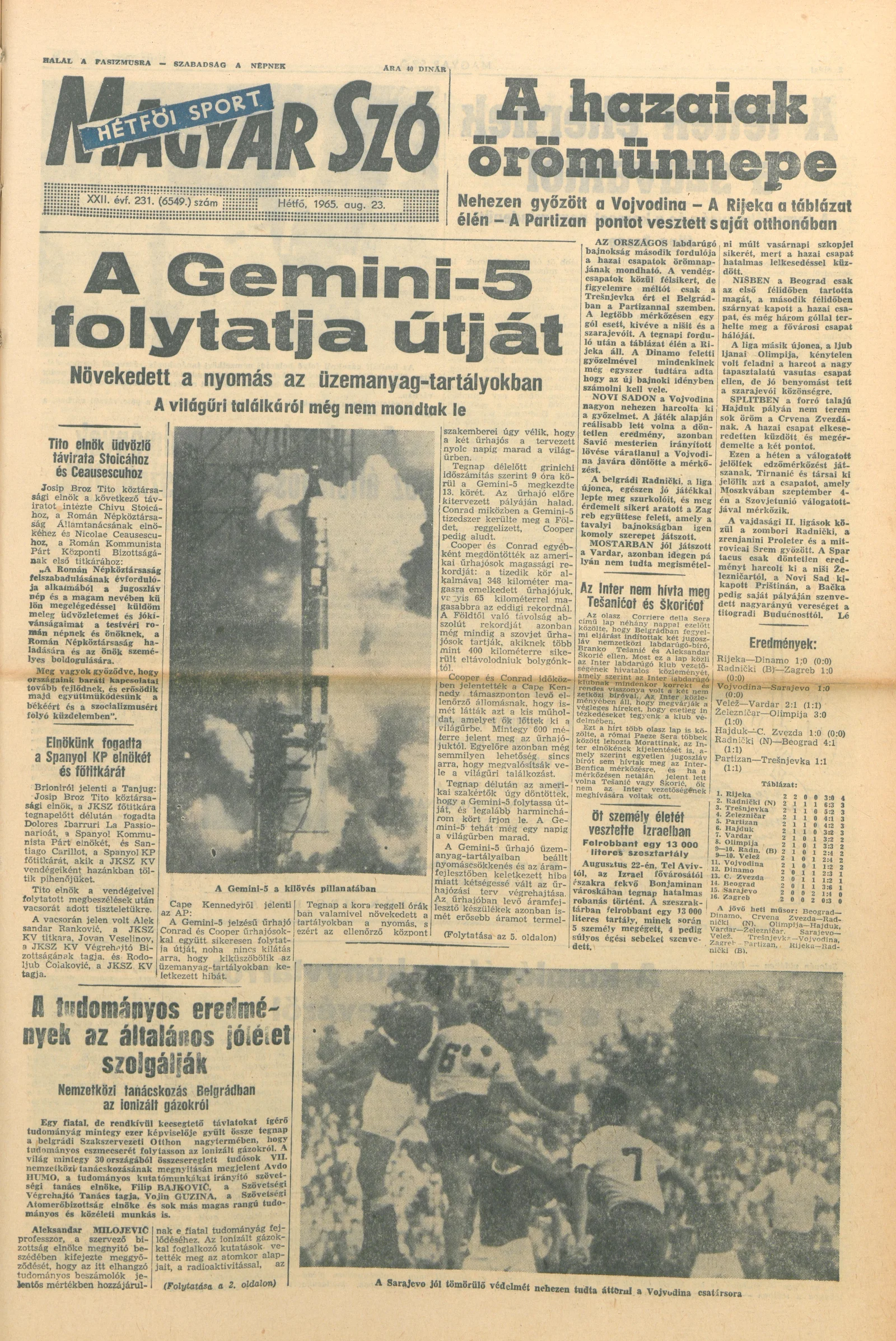 Magyar Szó, 22. évf. 1965. augusztus 23. 231. sz. 1–16. oldal