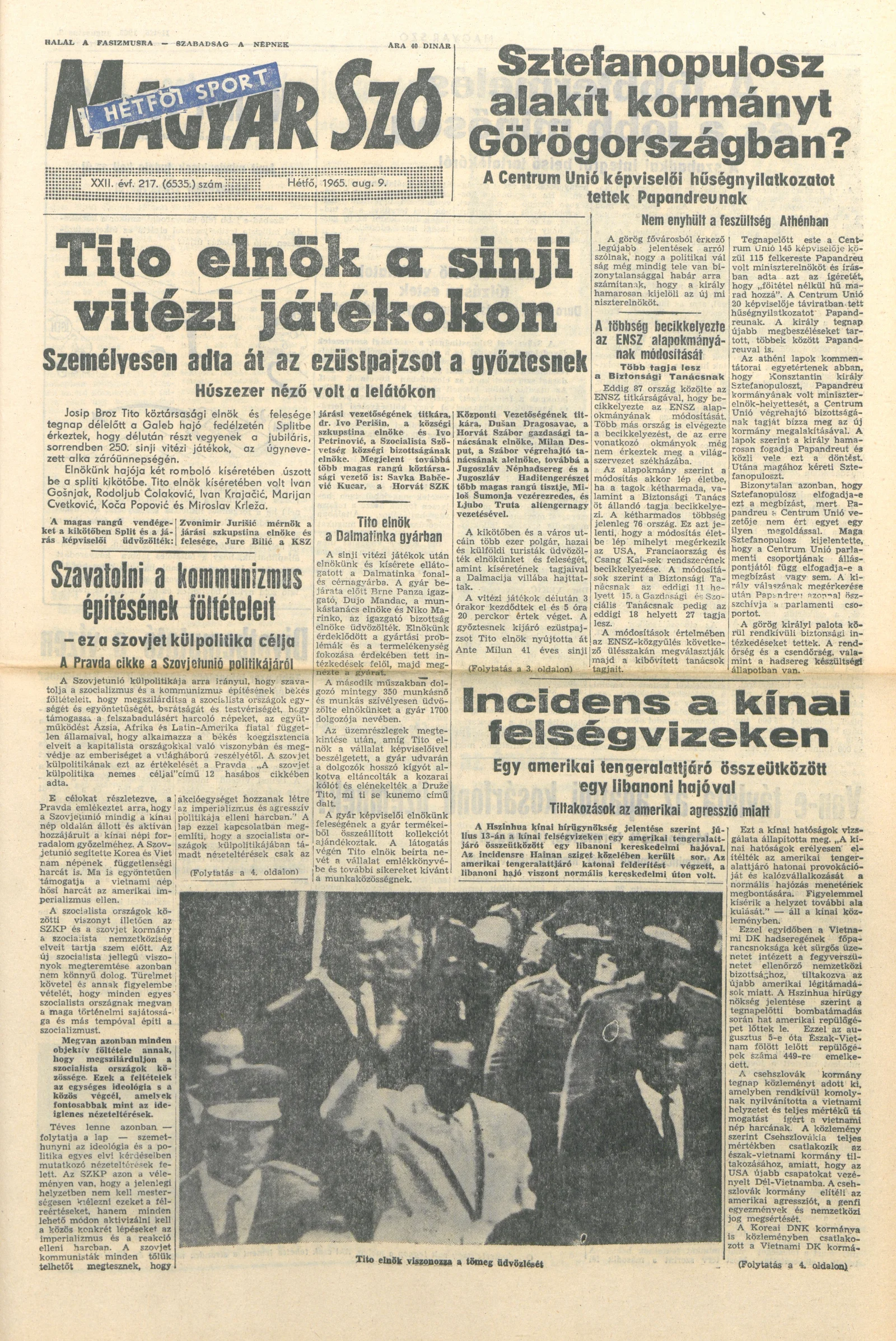 Magyar Szó, 22. évf. 1965. augusztus 9. 217. sz. 1–12. oldal