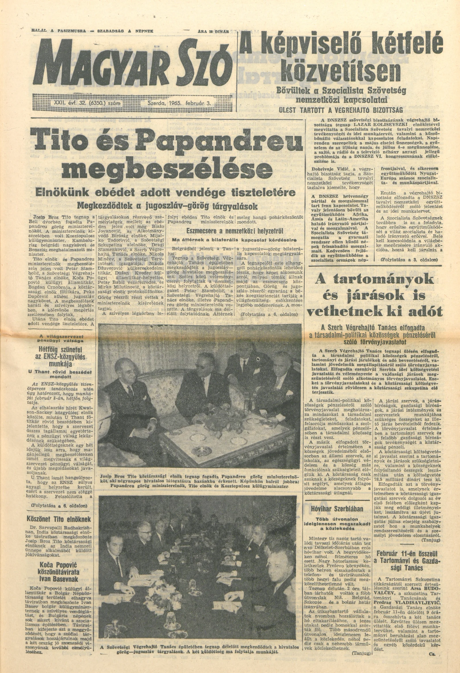 Magyar Szó, 22. évf. 1965. február 3. 32. sz. 1–16. oldal