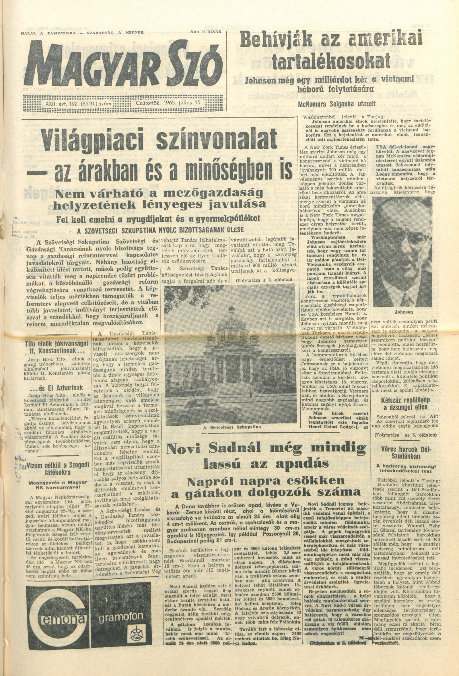 Magyar Szó, 22. évf. 1965. július 15. 192. sz. 1–12. oldal