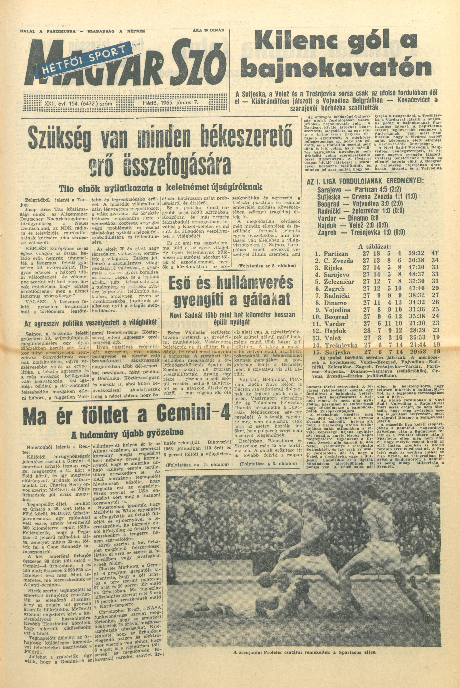 Magyar Szó, 22. évf. 1965. június 7. 154. sz. 1–16. oldal