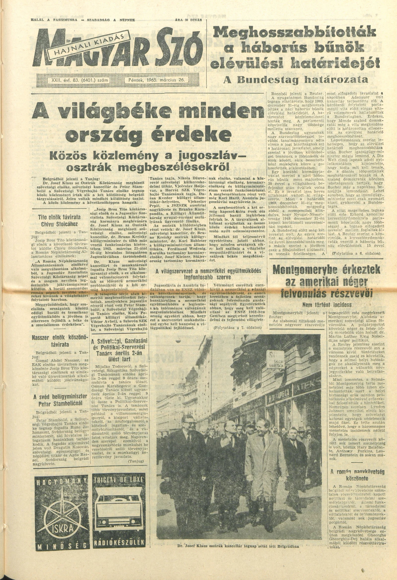Magyar Szó, 22. évf. 1965. március 26. 83. sz. 1–16. oldal
