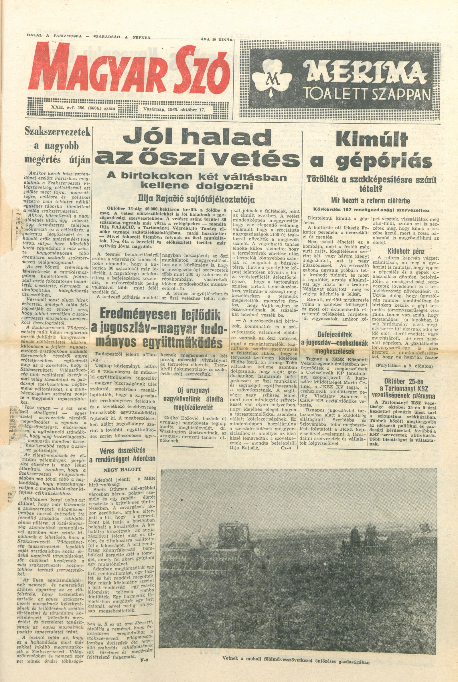 Magyar Szó, 22. évf. 1965. október 17. 286. sz. 1–24. oldal