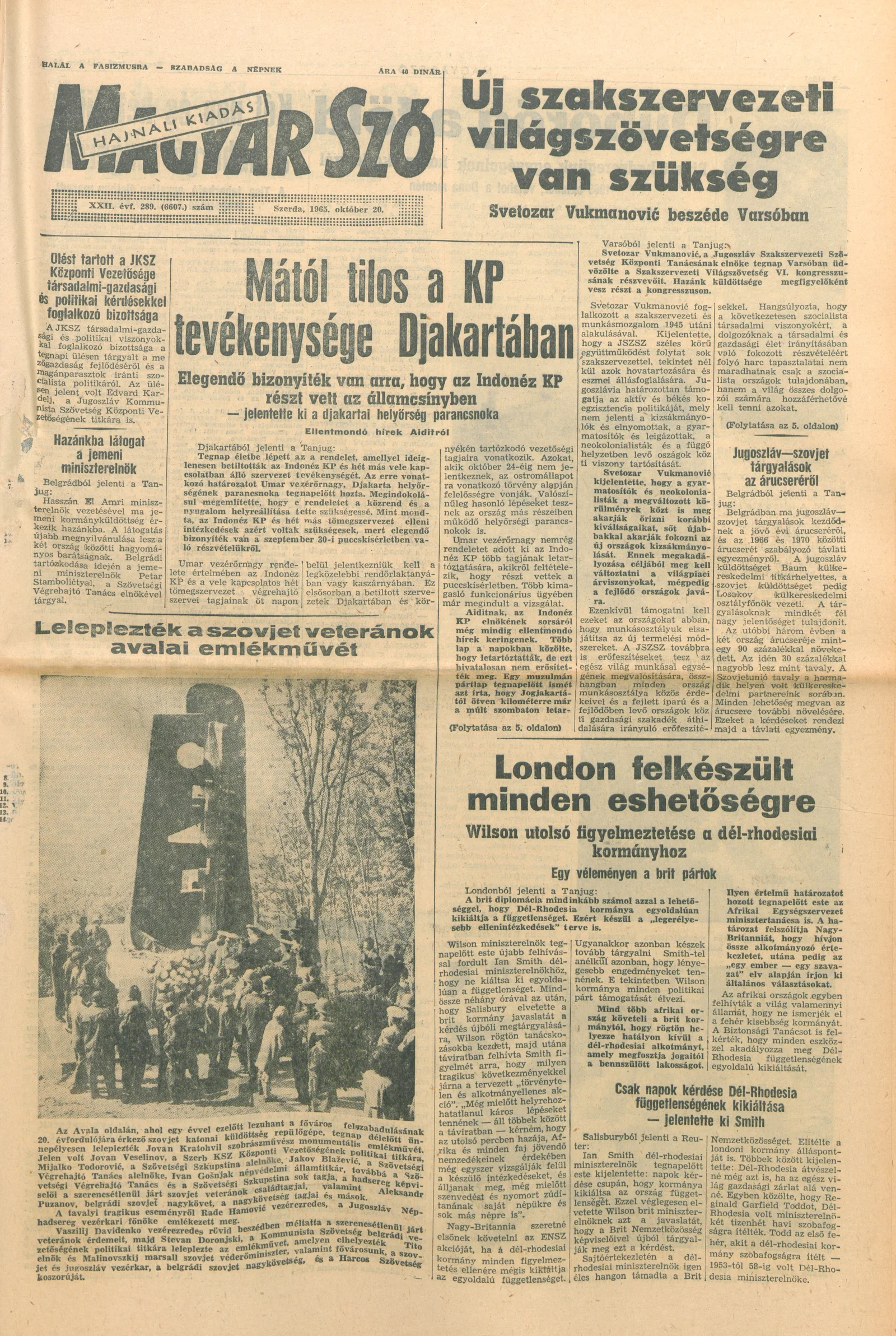 Magyar Szó, 22. évf. 1965. október 20. 289. sz. 1–16. oldal