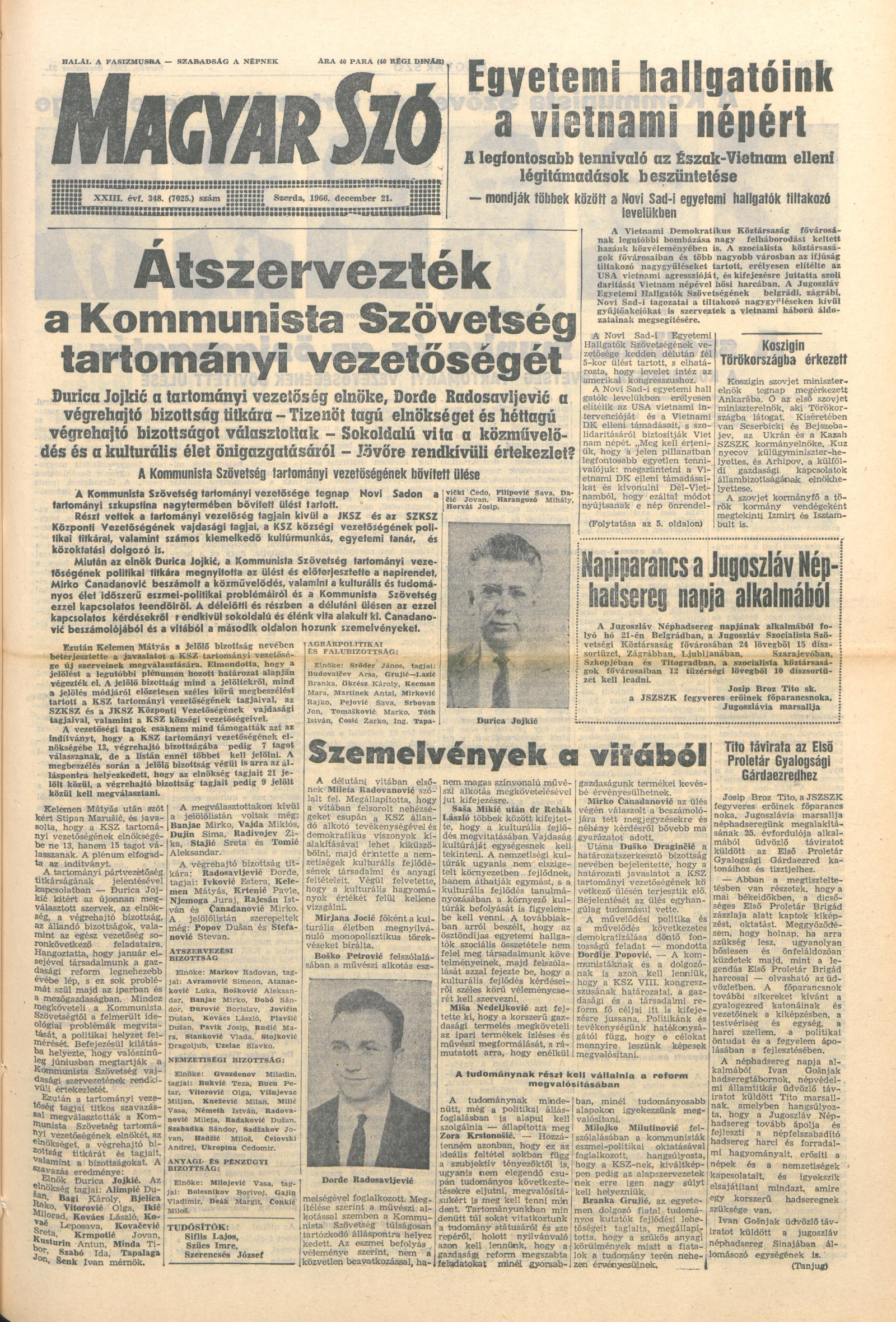 Magyar Szó, 23. évf. 1966. december 21. 348. sz.