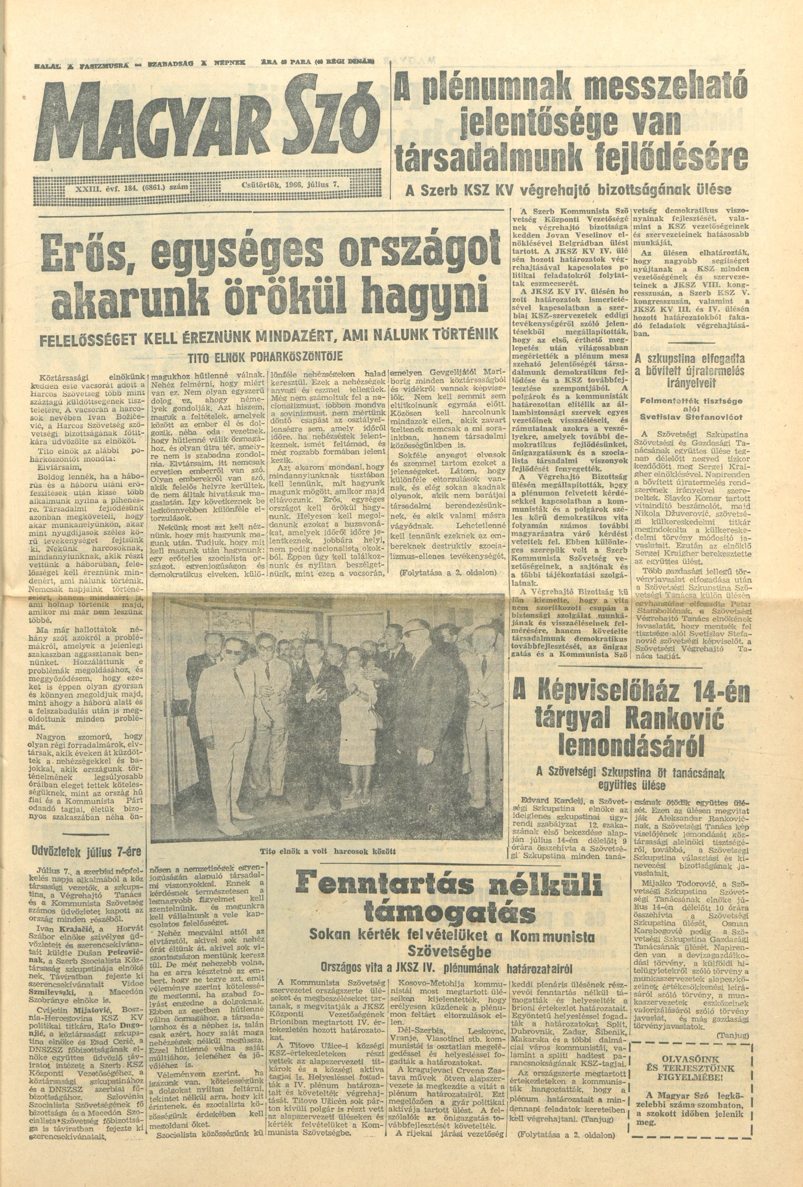 Magyar Szó, 23. évf. 1966. július 7. 184. sz.