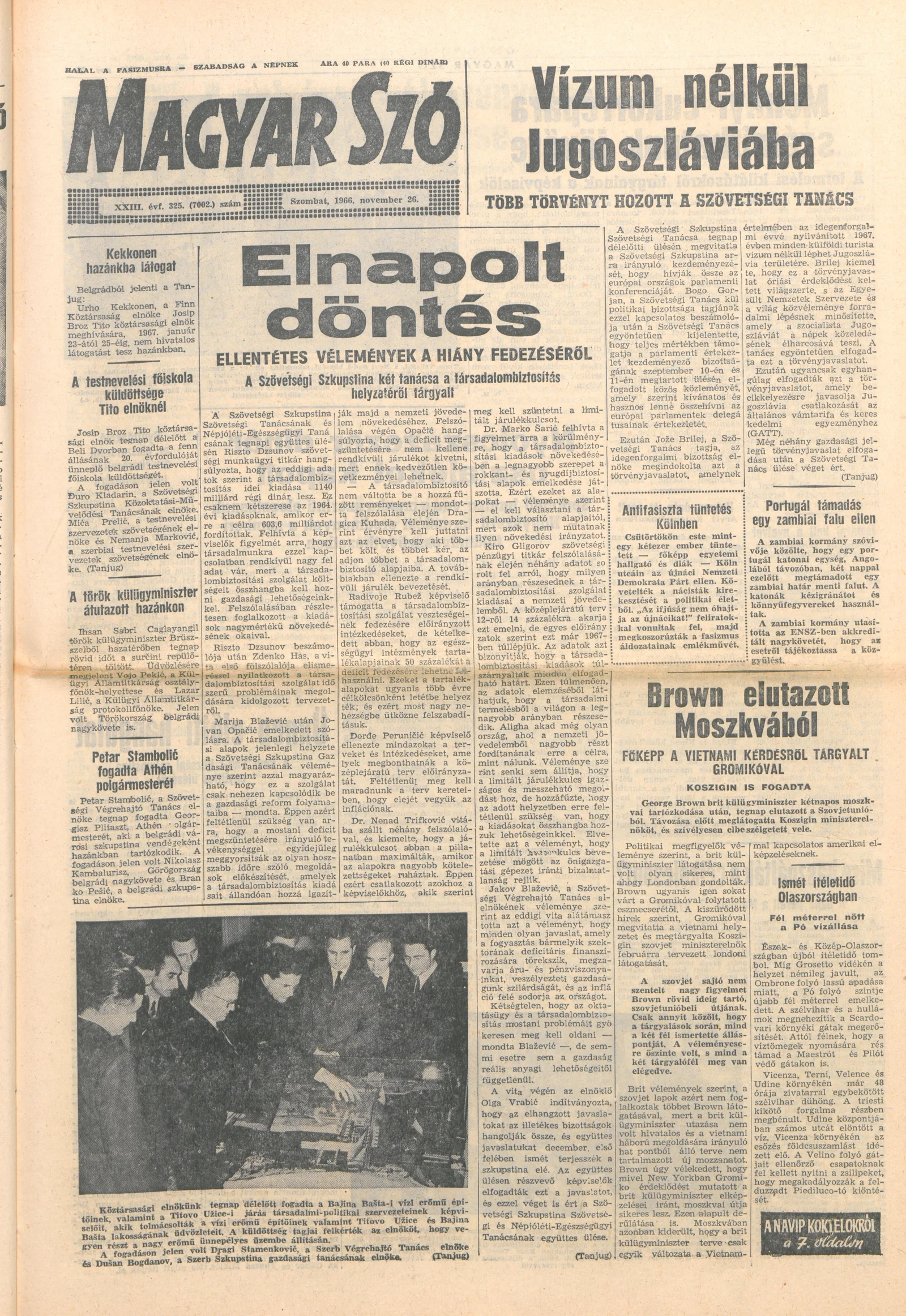 Magyar Szó, 23. évf. 1966. november 26. 325. sz.