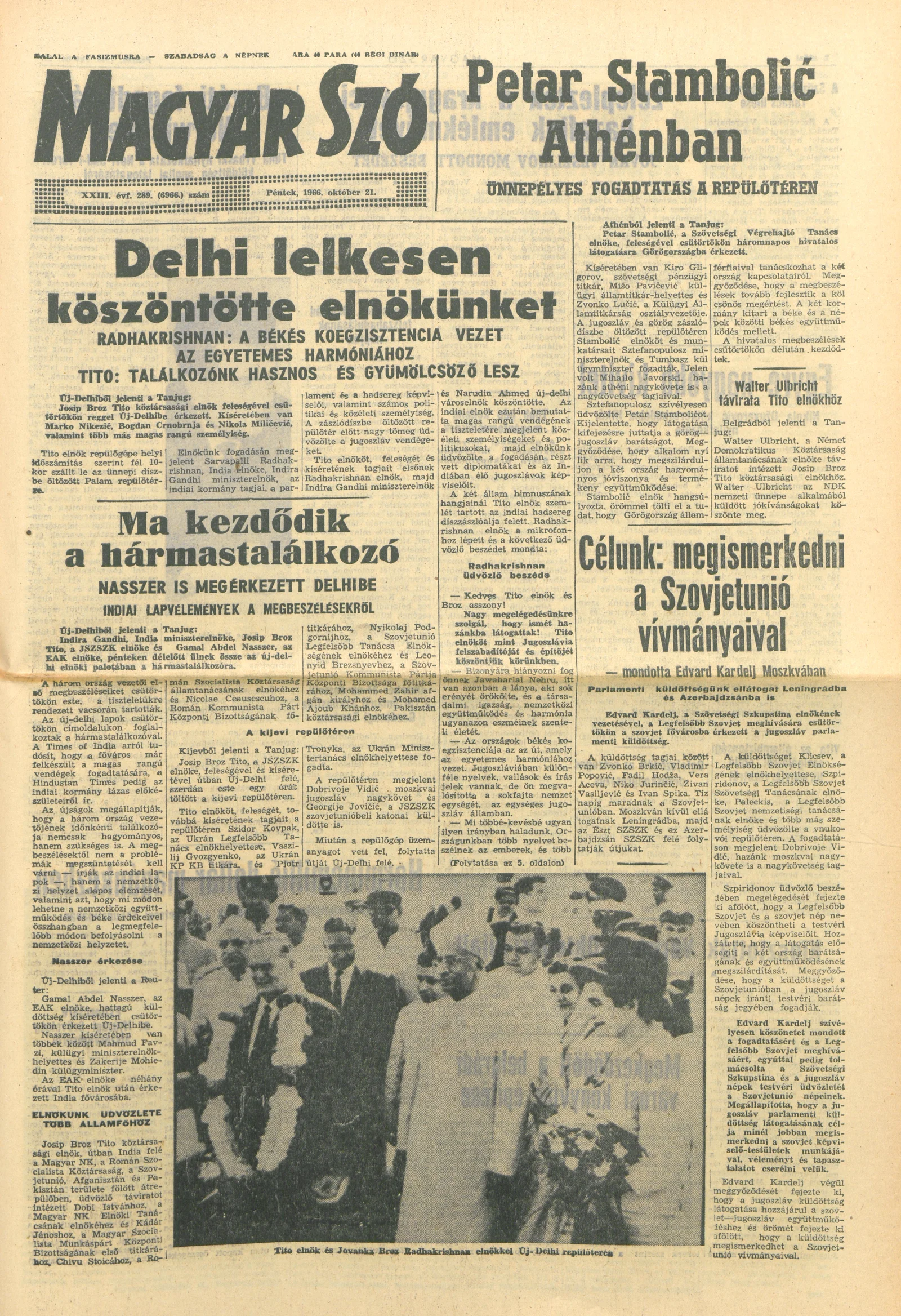 Magyar Szó, 23. évf. 1966. október 21. 289. sz.