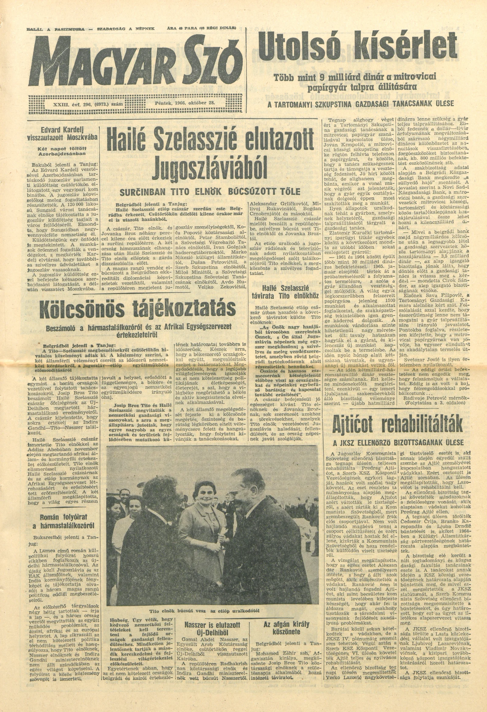 Magyar Szó, 23. évf. 1966. október 28. 296. sz.