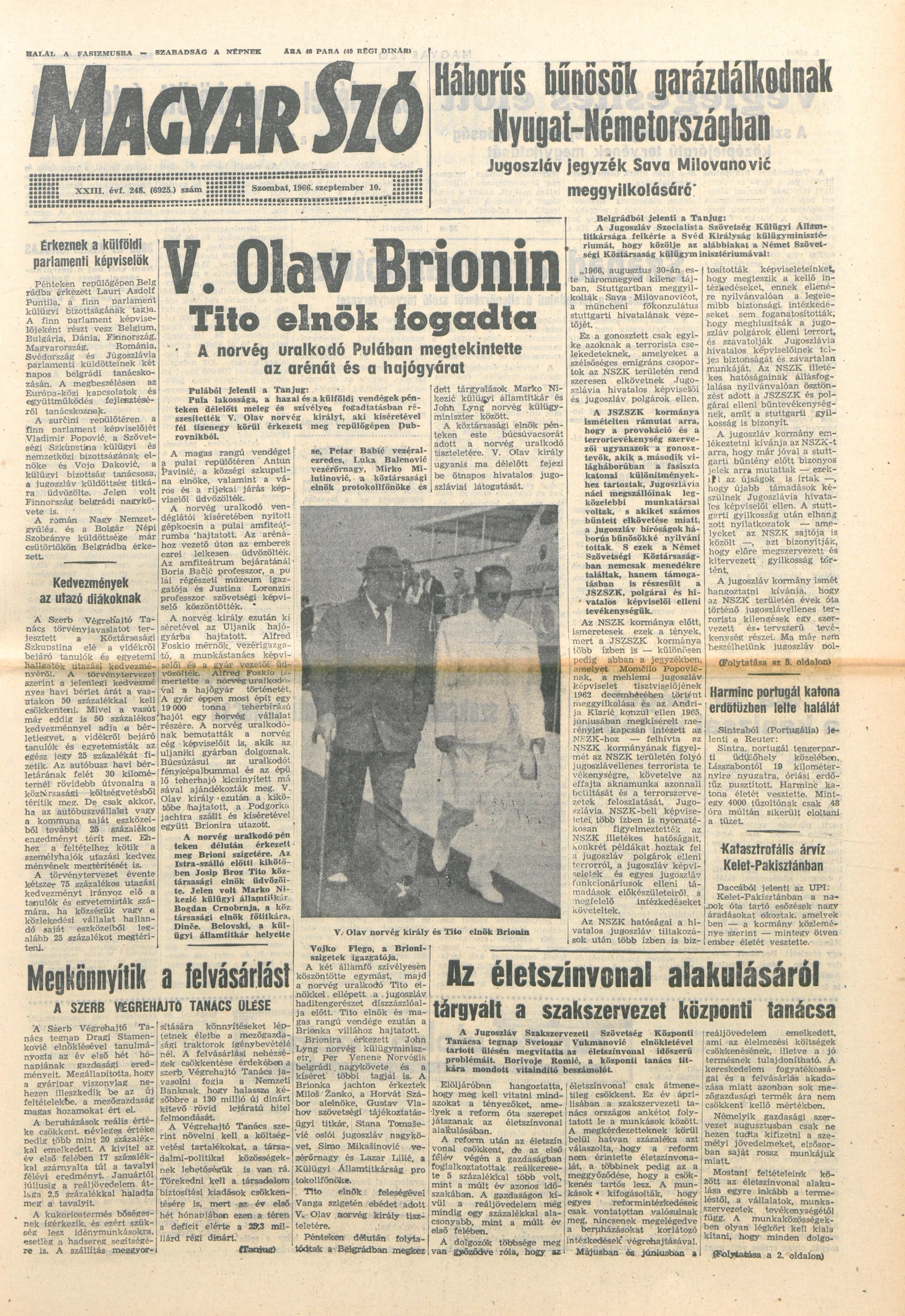 Magyar Szó, 23. évf. 1966. szeptember 10. 248. sz.