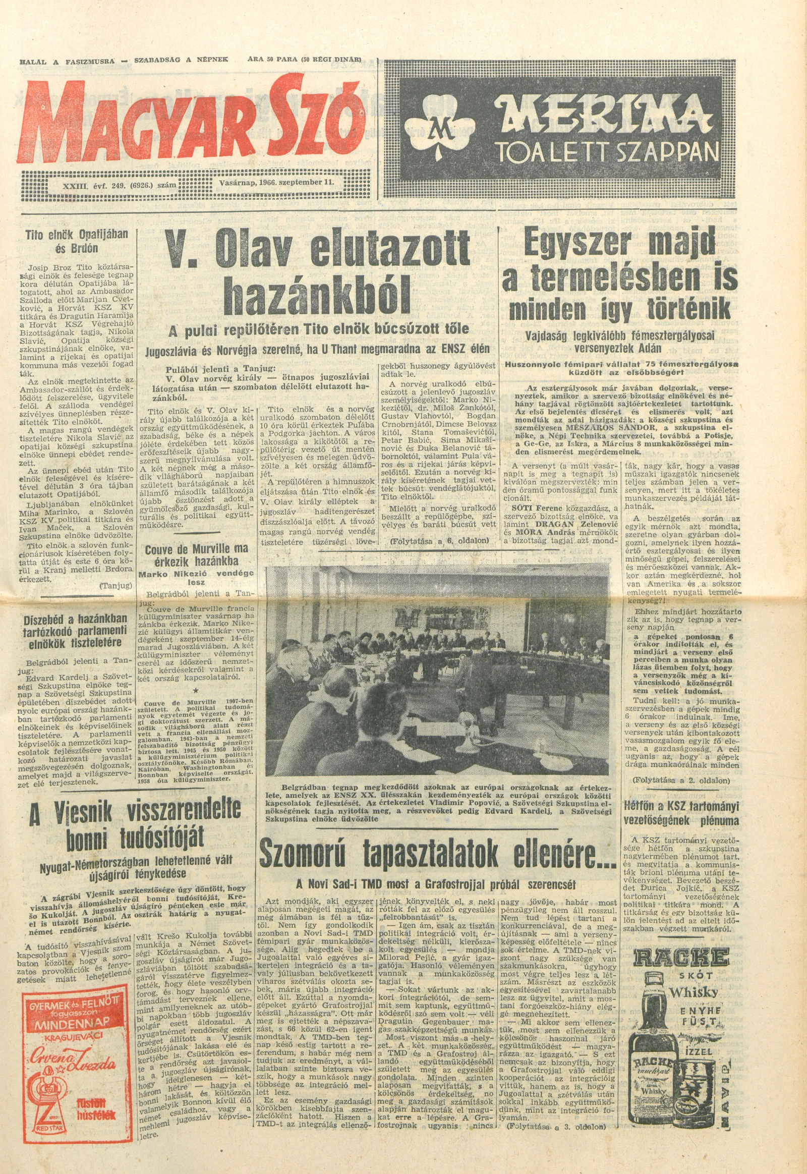 Magyar Szó, 23. évf. 1966. szeptember 11. 249. sz.