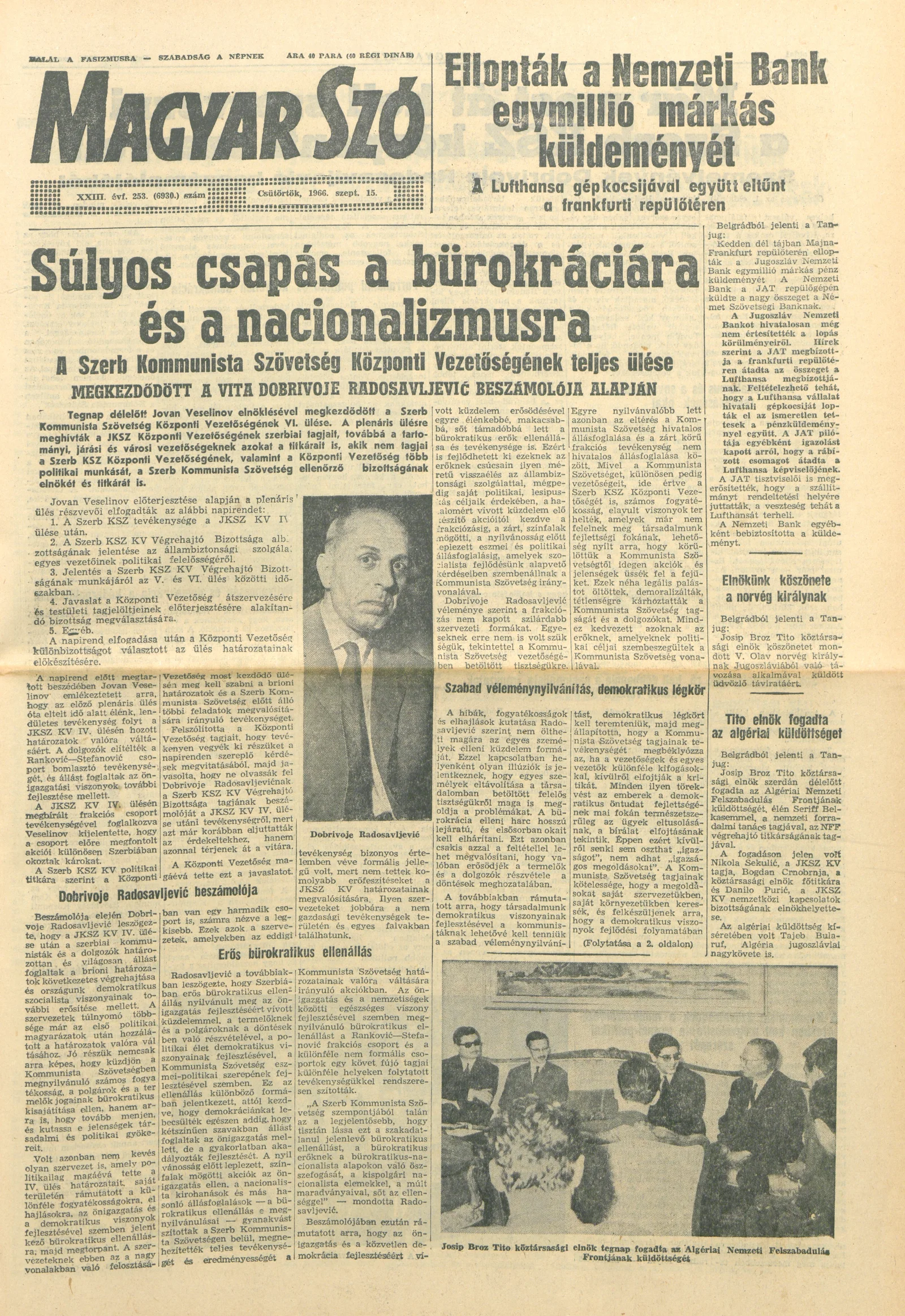 Magyar Szó, 23. évf. 1966. szeptember 15. 253. sz.